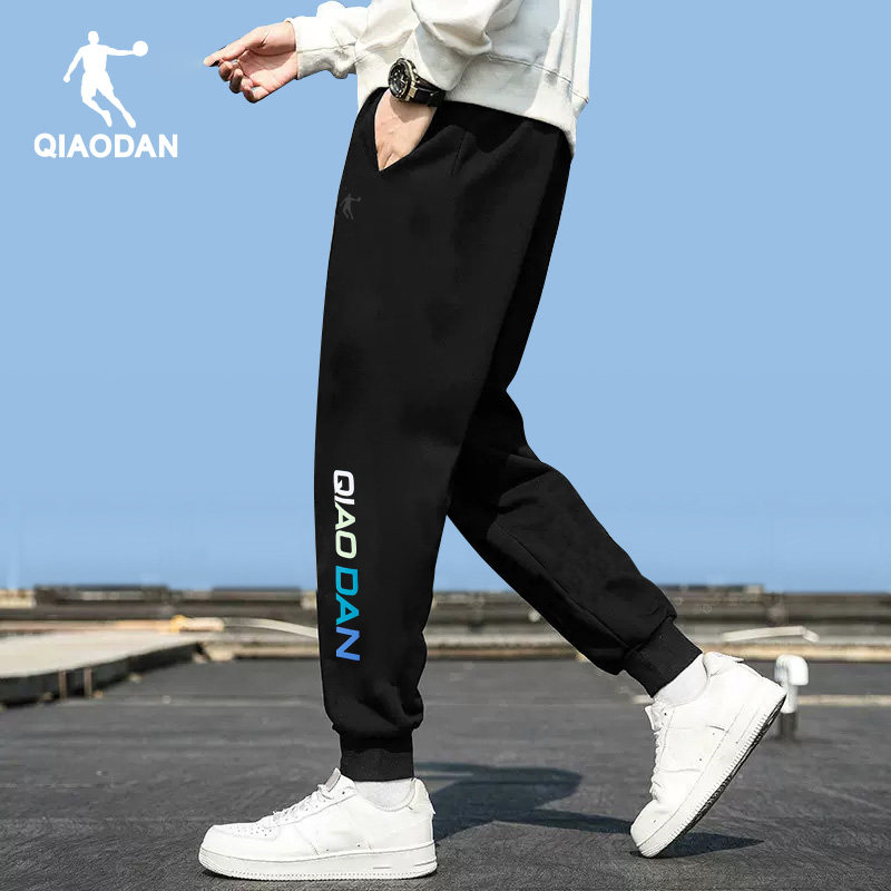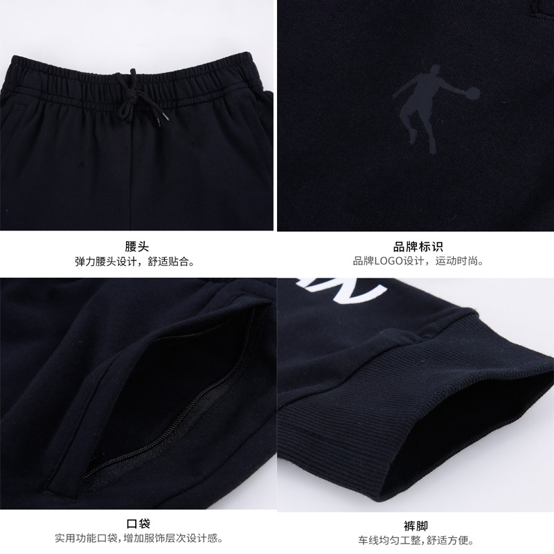 乔丹运动裤男裤2025秋冬季新款针织束脚裤子休闲裤男长裤黑色卫裤