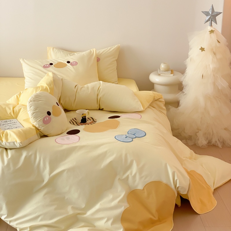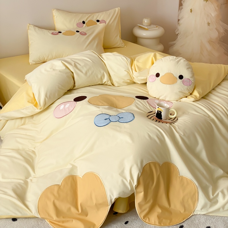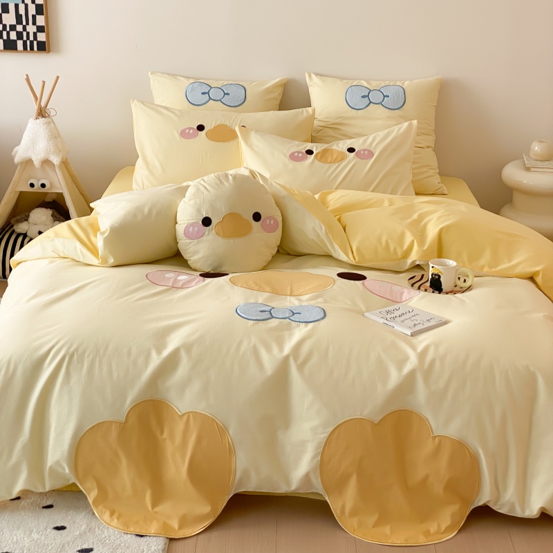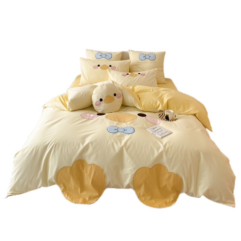 小清新儿童纯棉三四件套可爱鸭子卡通刺绣被套女孩水洗棉全棉床品
