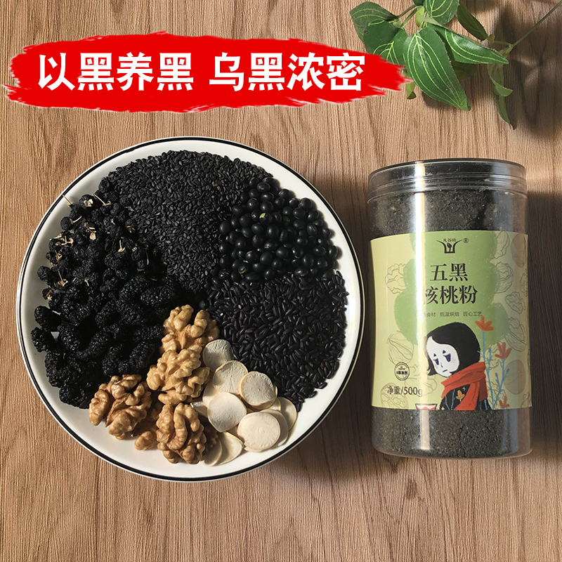 现磨熟五黑芝麻粉核桃黑豆黑枸杞桑葚糊 即食早餐五谷杂粮代+餐粉