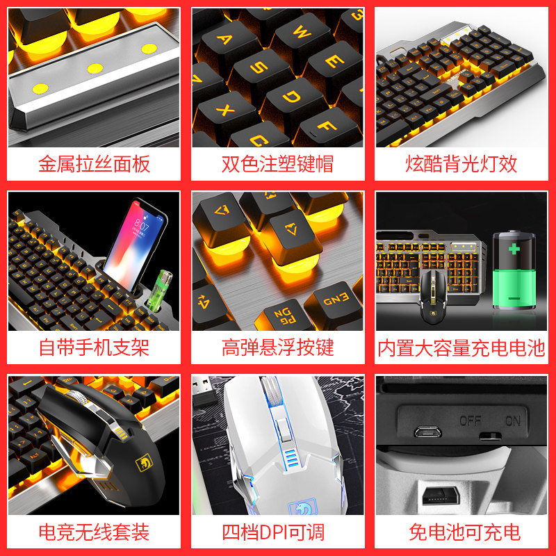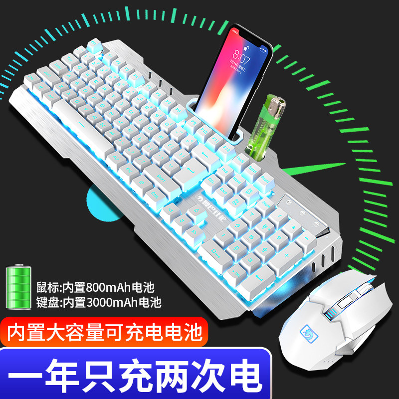 机械手感可充电式蓝牙双模无线发光键鼠套装静音金属游戏键盘鼠标