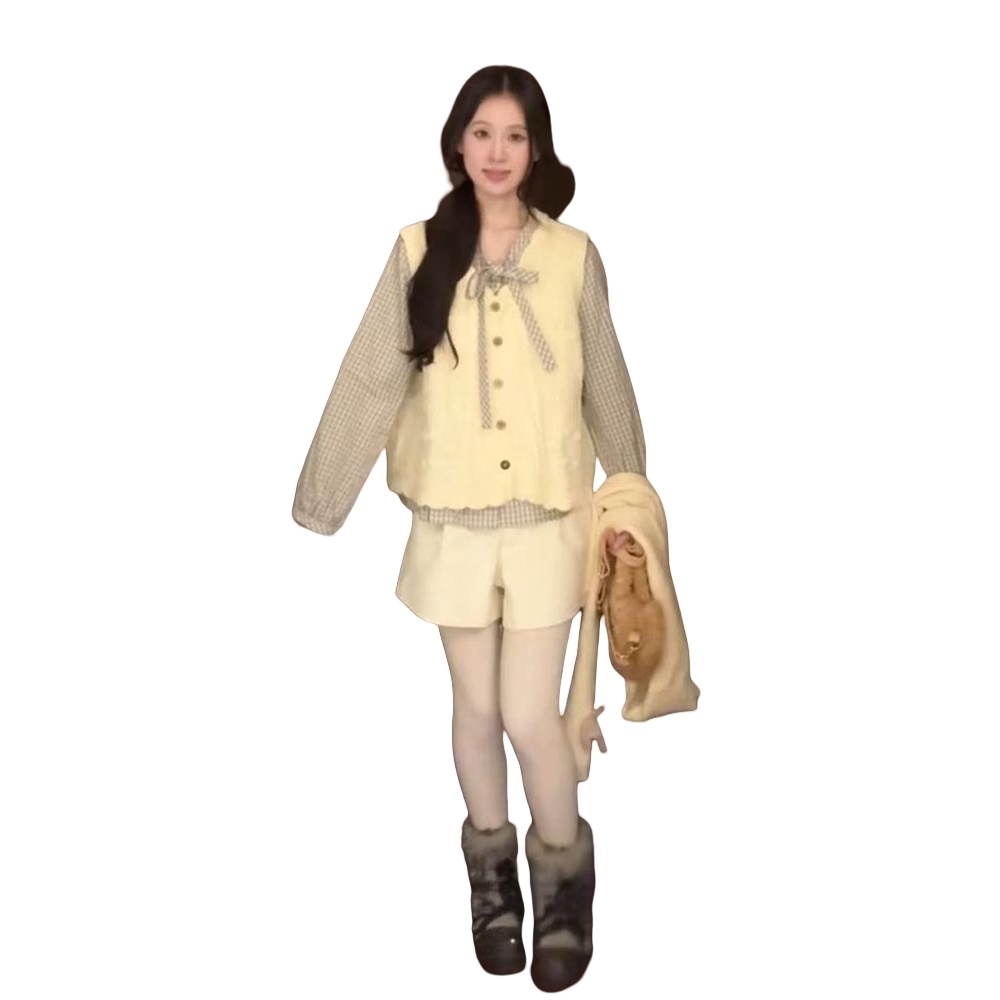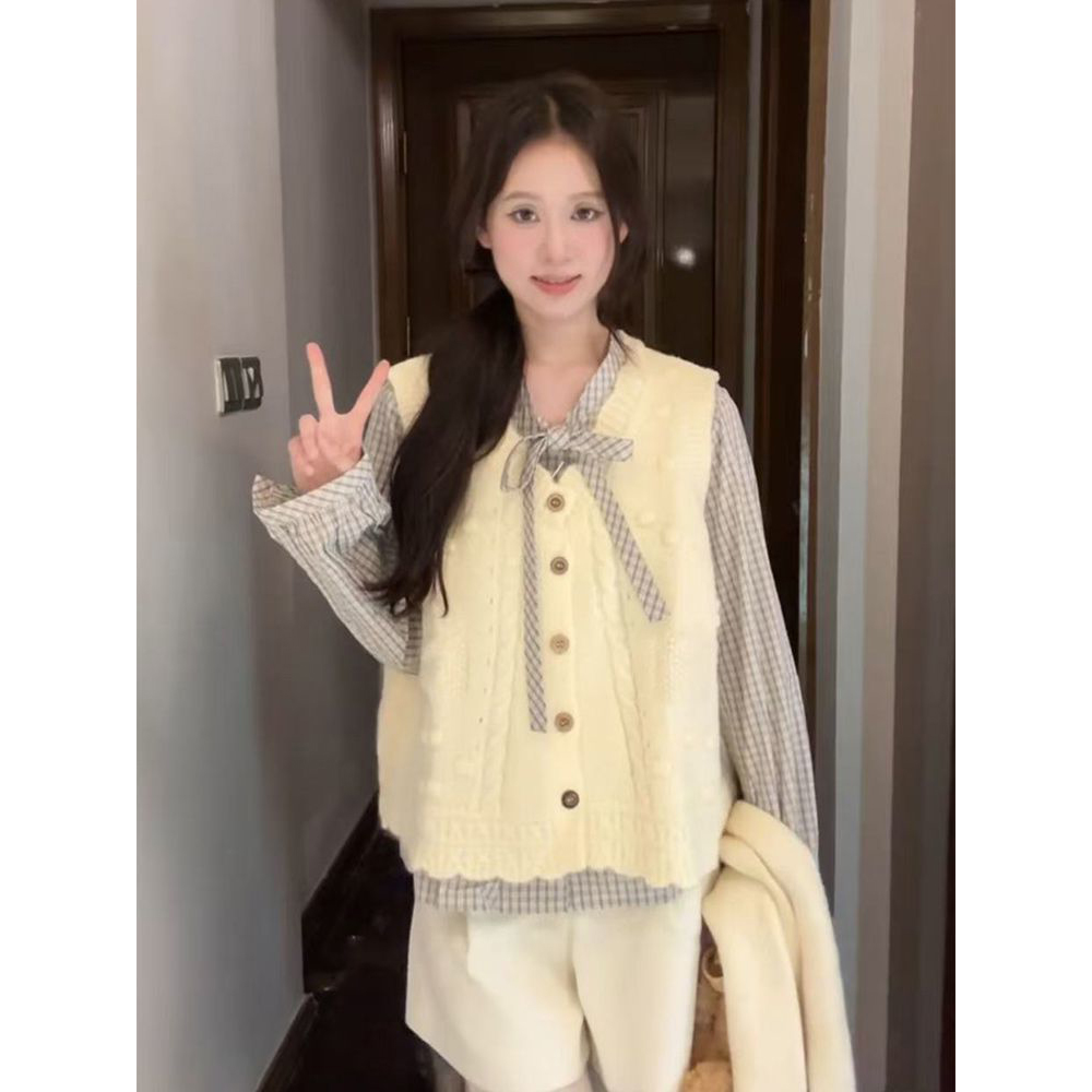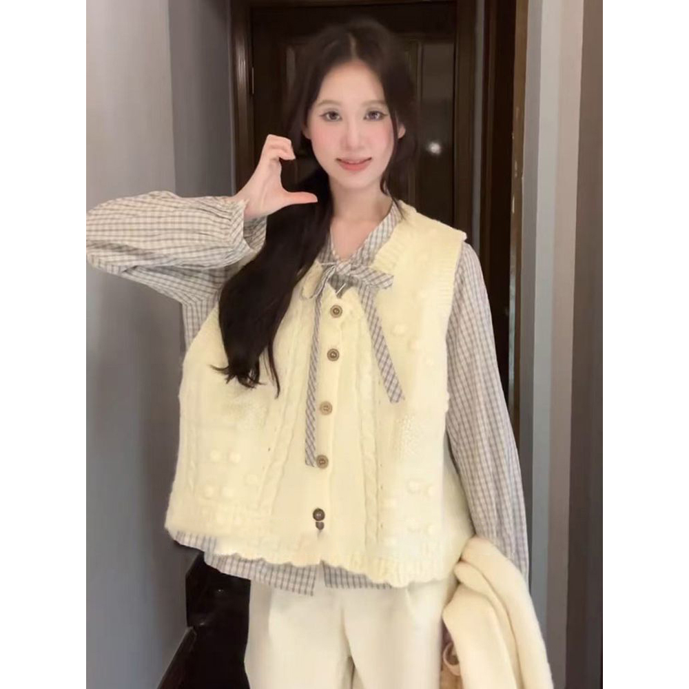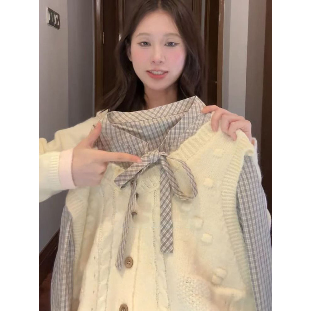 秋季新款日系通勤学院风穿搭针织开衫马甲女学生搭配格子长袖衬衫