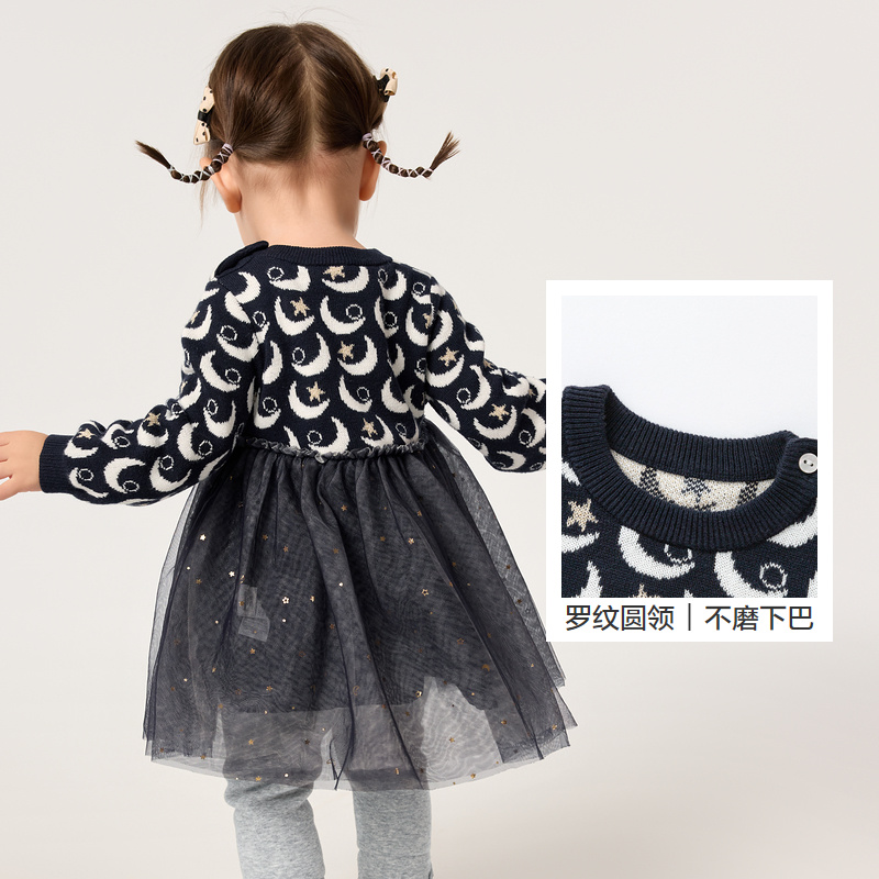 巴拉巴拉宝宝裙子公主裙洋气儿童秋冬连衣裙拼接纱裙精致时髦洋气