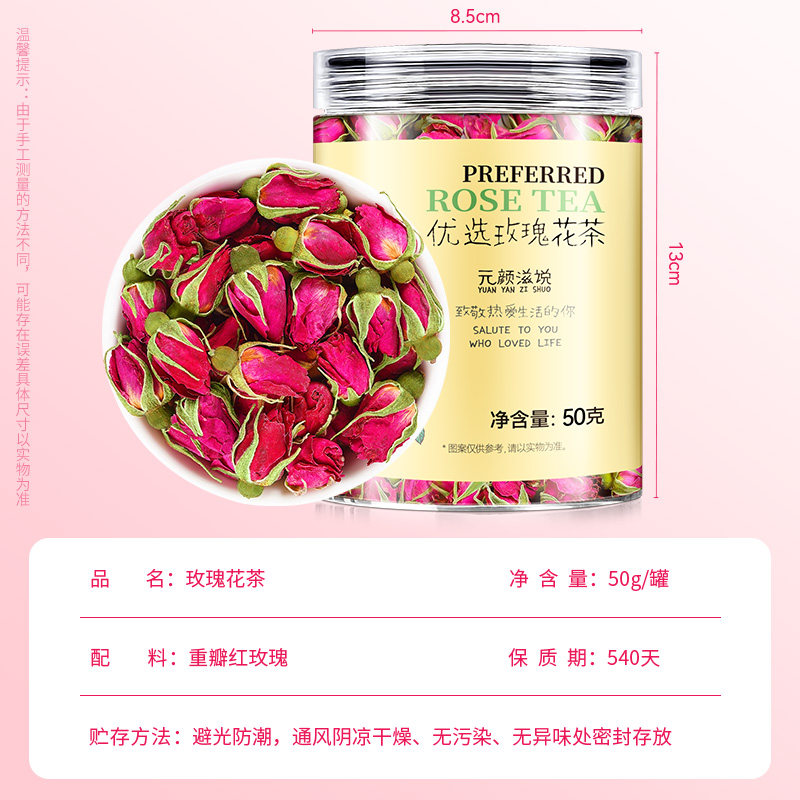 贡苑绿色食品茶叶花茶平阴重瓣玫瑰花茶玫瑰花冠金边玫瑰花蕾花苞