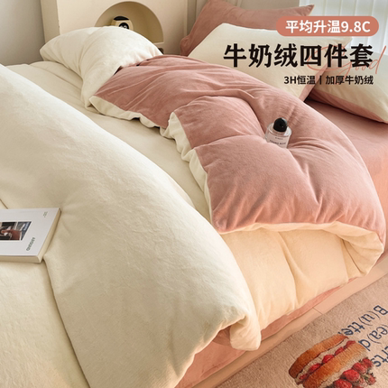 2024新款冬季牛奶绒四件套床上加厚绒床单珊瑚绒法莱绒被套床品三