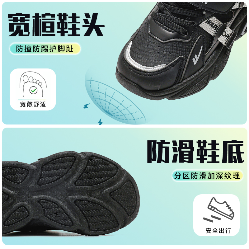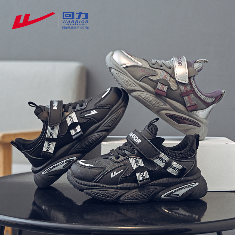 回力童鞋男童黑色运动鞋网面透气2025新款春秋季儿童轻便休闲跑鞋