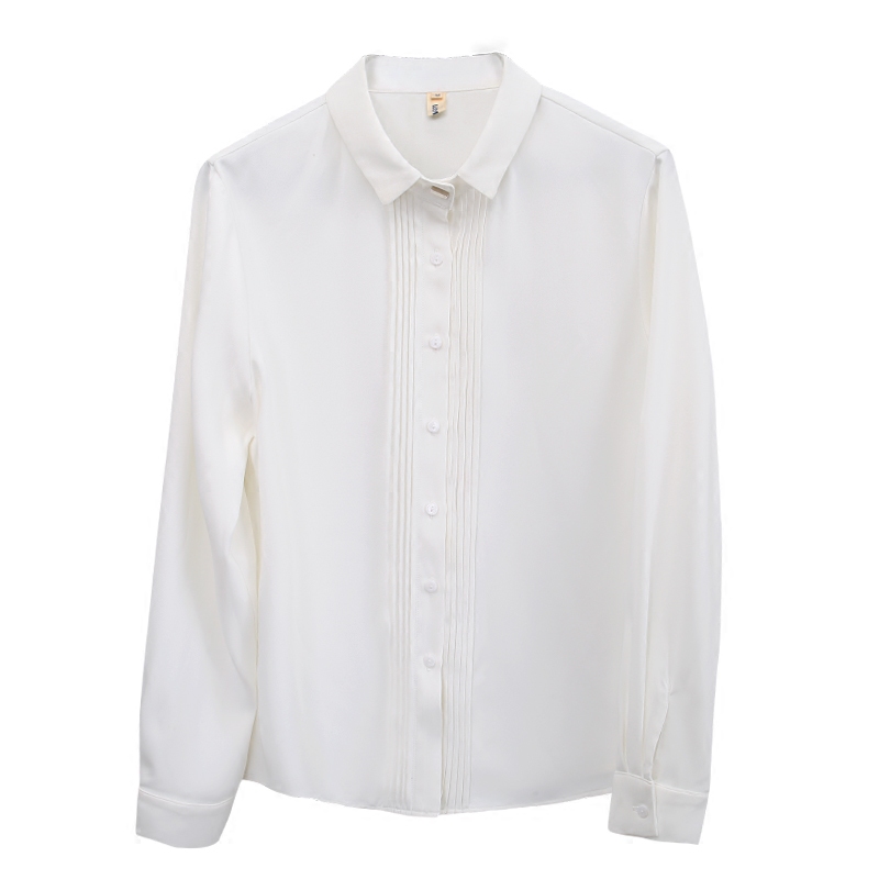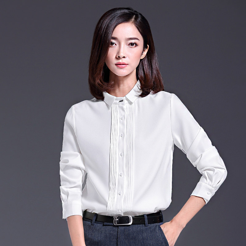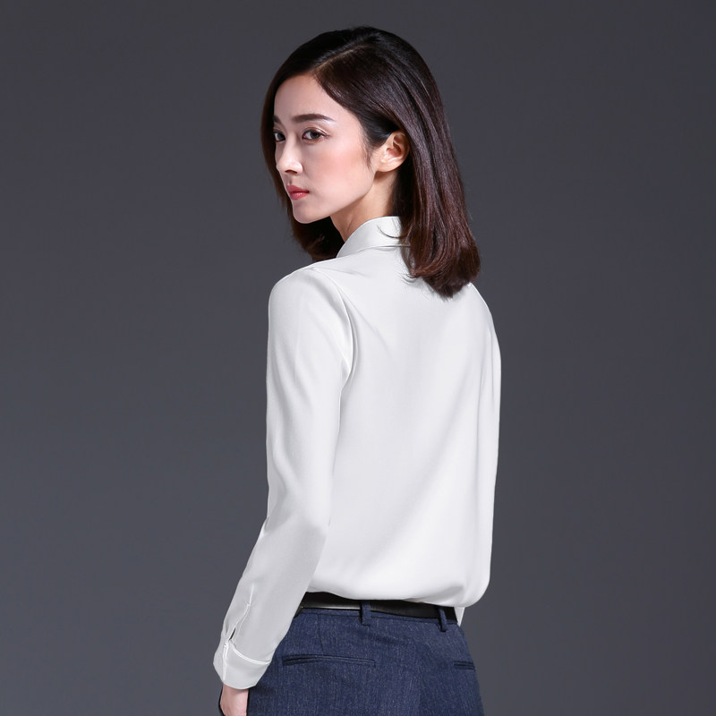 高端白色雪纺衬衫女长袖职业装衬衣休闲春秋法式别致时尚气质上衣