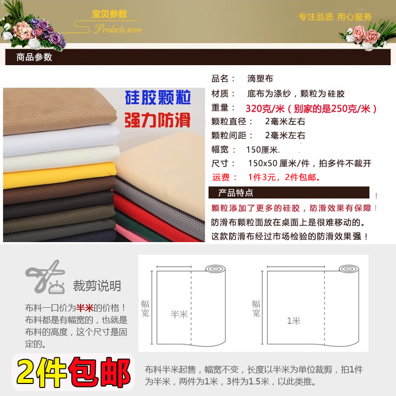防滑布料沙发坐垫防滑布料地毯床垫防滑辅料鞋底防滑布滴塑布面料
