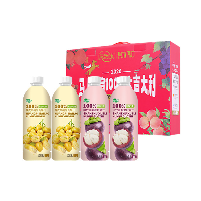 【38爆品日】康之味NFC山竹雪梨1L原榨纯果汁饮料果汁整箱