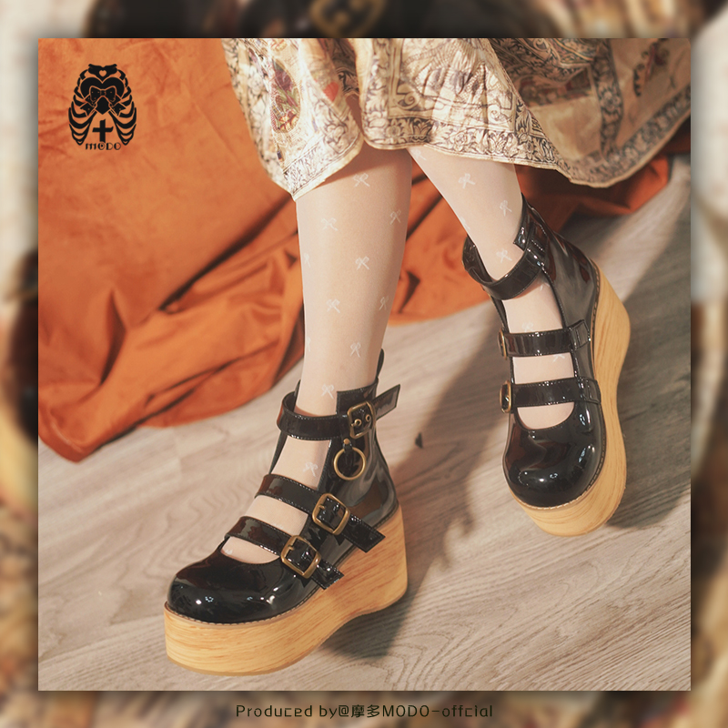 【高跟现货】三扣松糕摩多modo原创厚底鞋lolita鞋圆头复古单鞋女