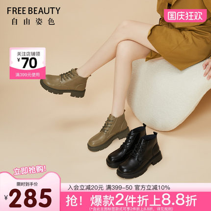 自由姿色厚底马丁靴女冬季新款可爱风圆头短靴纯黑系带靴子