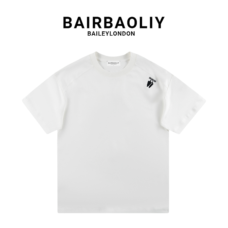BAIRBAOLIY时尚百搭圆领短袖T恤男新款拼接刺绣简约上衣2025春夏