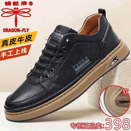 蜻蜓牌男鞋2024年秋季新款真皮透气软底运动休闲鞋轻便百搭板鞋