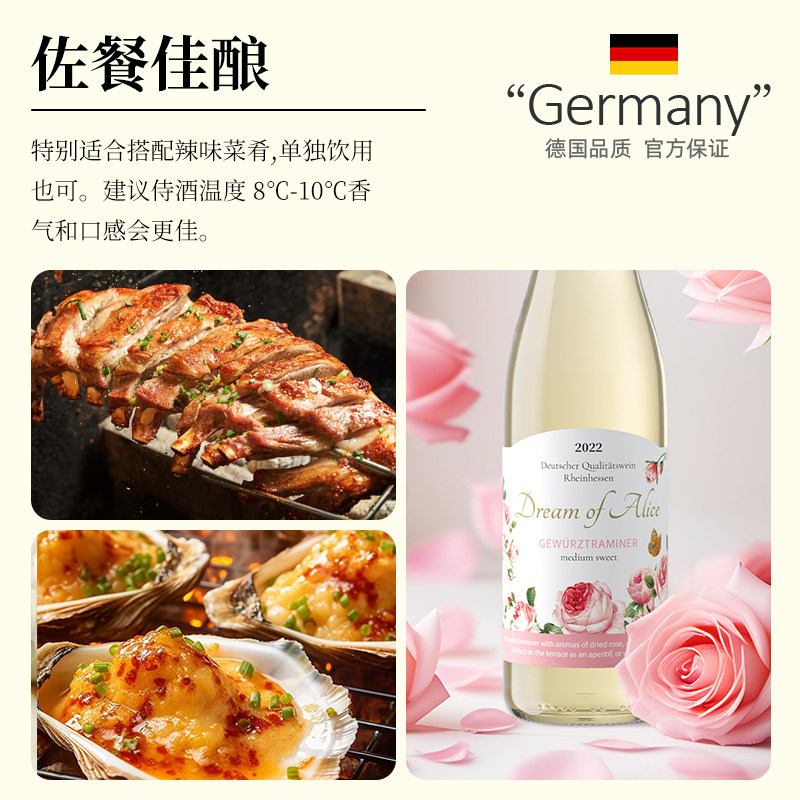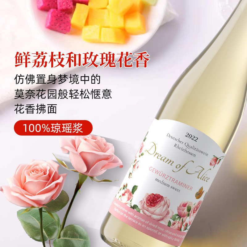 德国原瓶进口玫瑰荔枝冰奇妙梦境琼瑶浆 超好喝半甜白葡萄酒750ml