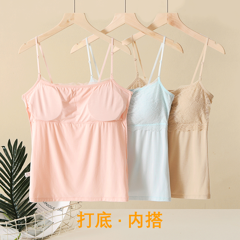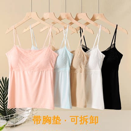 莫代尔打底小吊带抹胸带胸垫蕾丝内衣夏季防走光女士内搭吊带背心