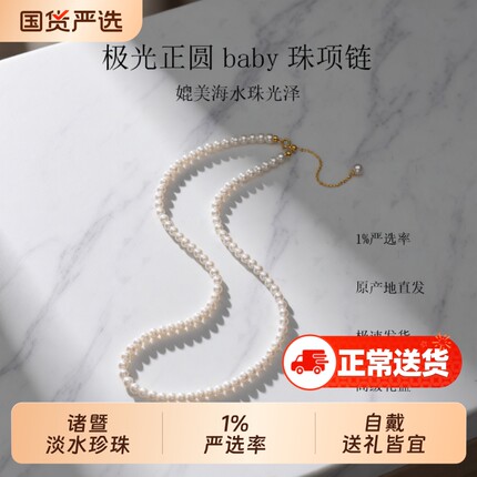 诸暨淡水珍珠项链女18K金正圆baby小米珠锁骨链时尚气质百搭礼物