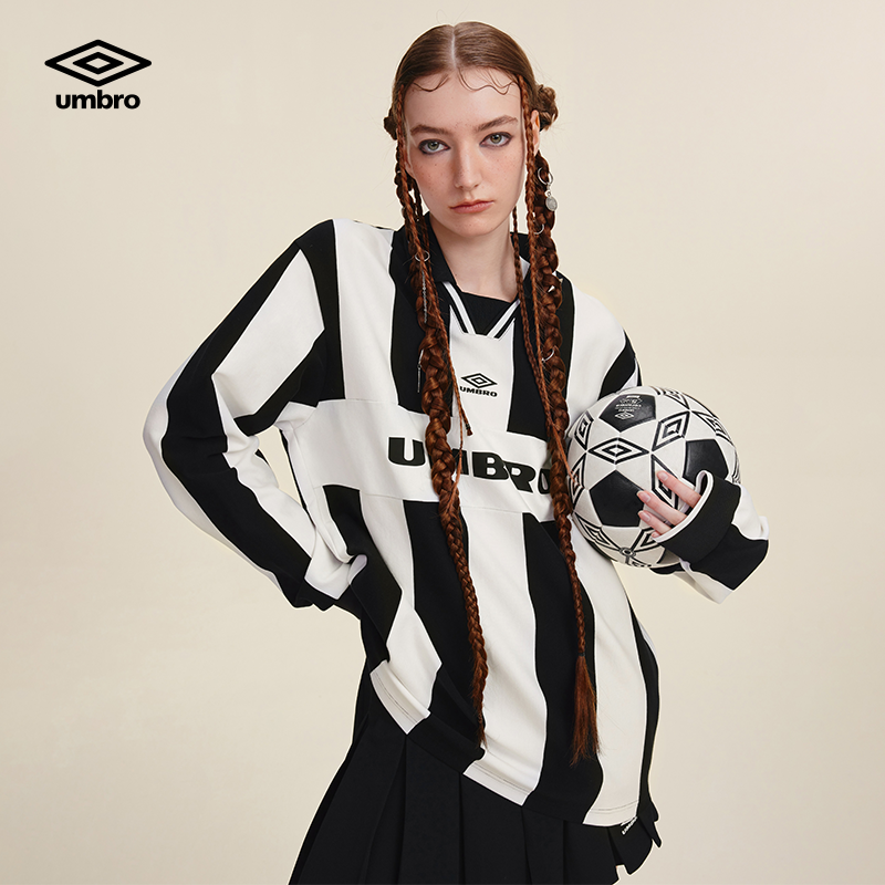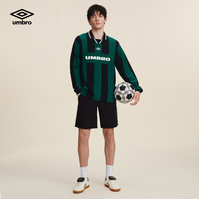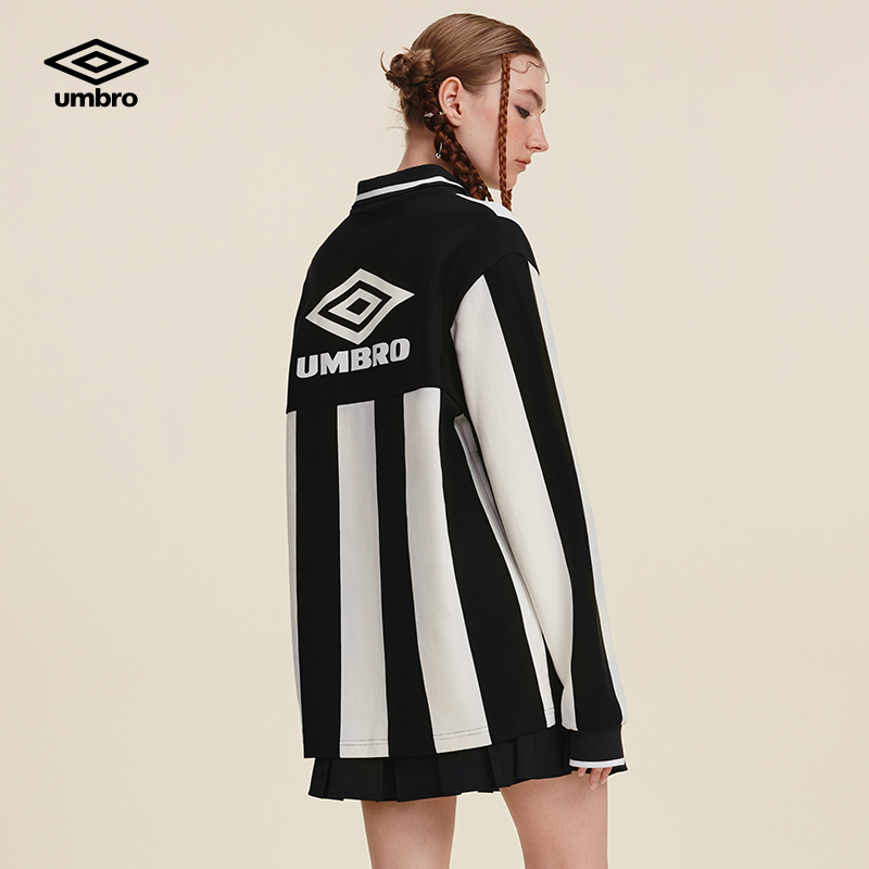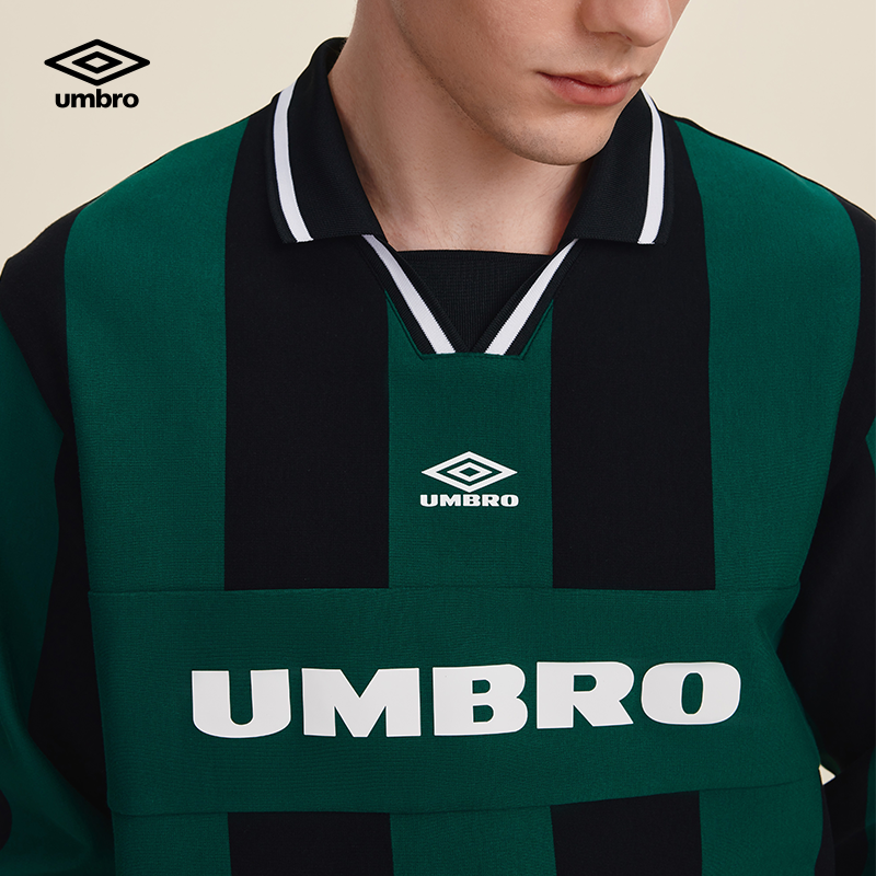 umbro茵宝运动长袖衫POLO春季男女同款翻领竖条纹复古球衣长T恤衫