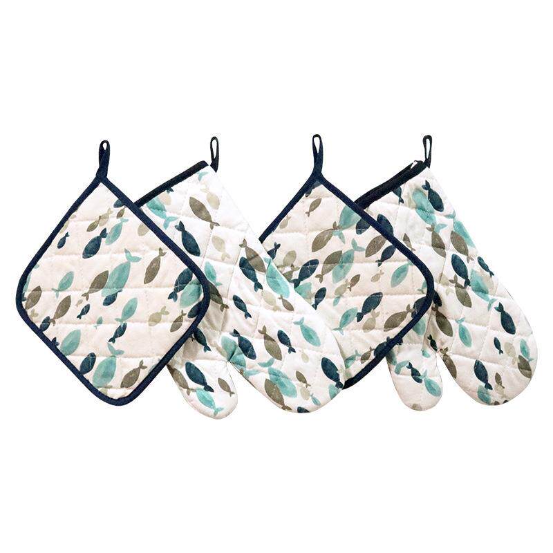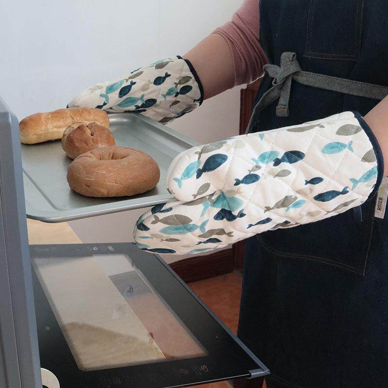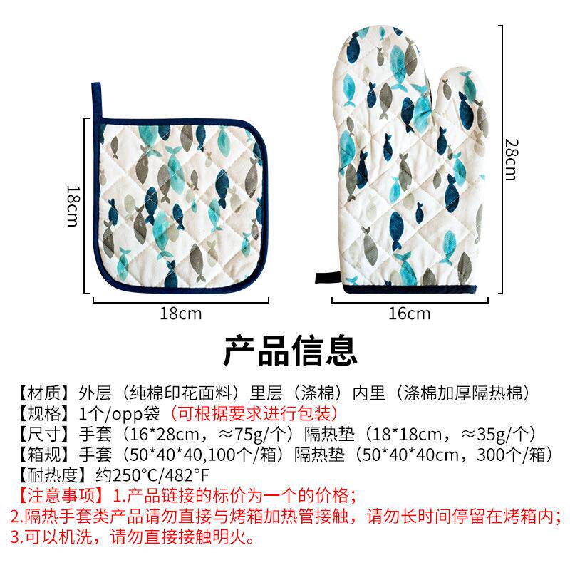 棉质地中海蓝色小鱼微波炉手套 烘焙用隔热手套隔热垫