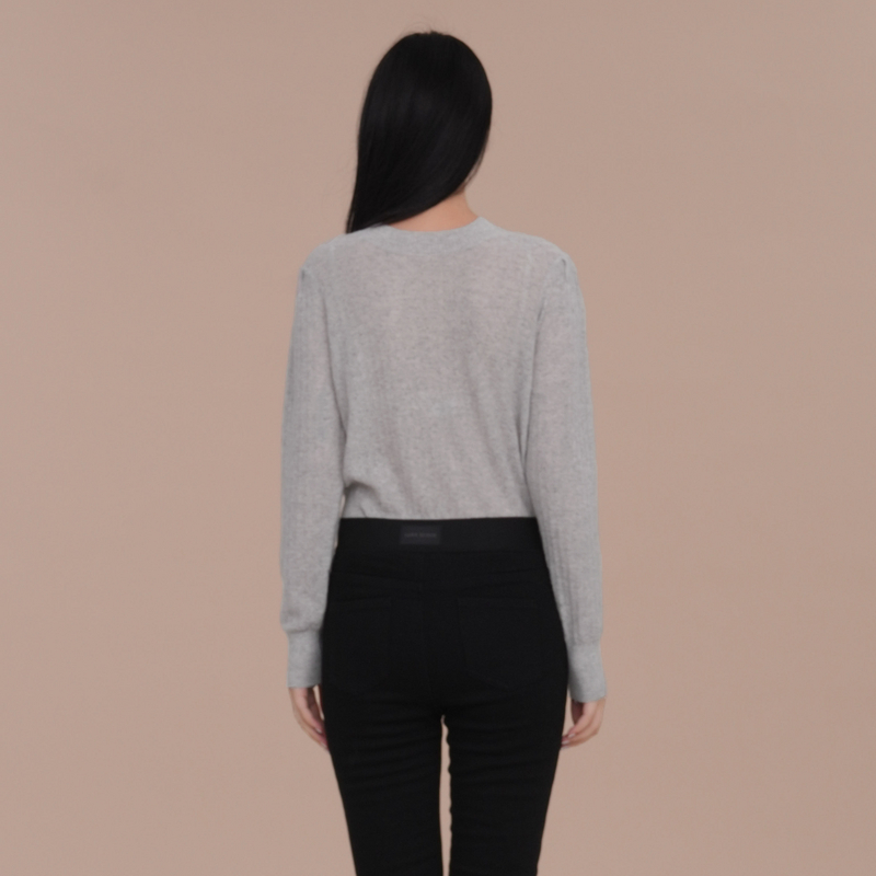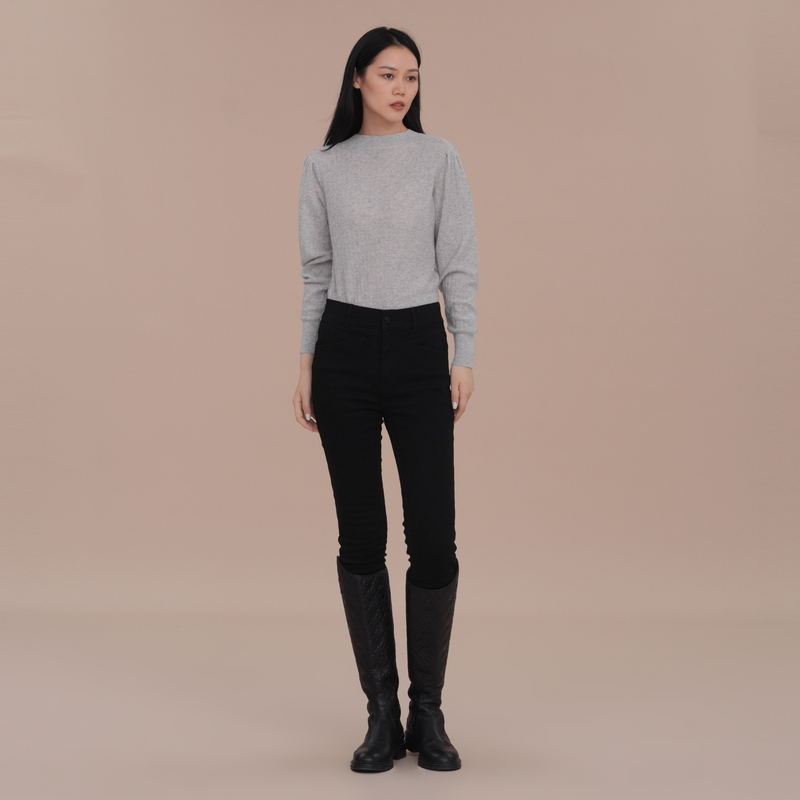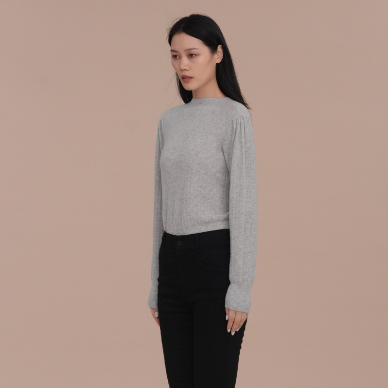 XG雪歌灰色厚款长袖毛针织衫时尚冬季新款通勤山羊绒套头毛衫女装