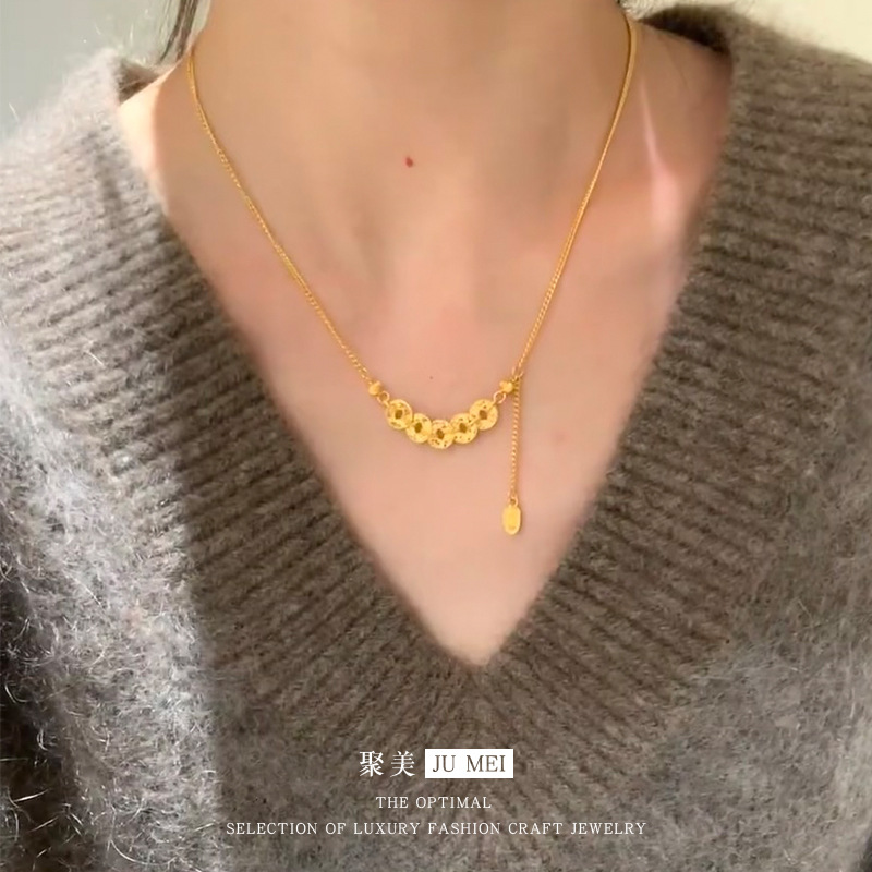 小红书抖音金店同款五帝钱项链沙金财源滚滚爆闪碎冰纹五金钱