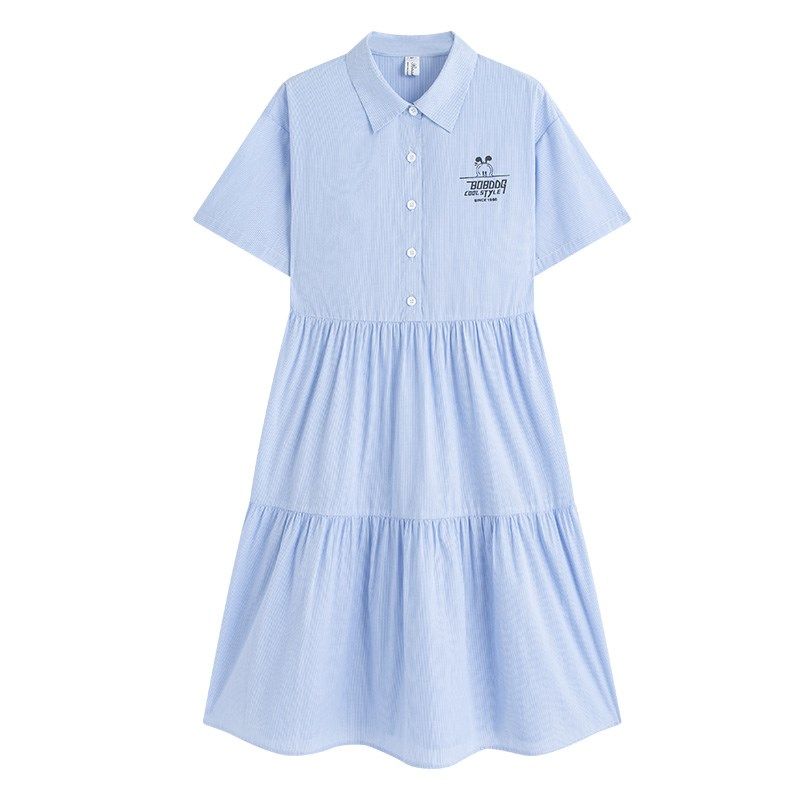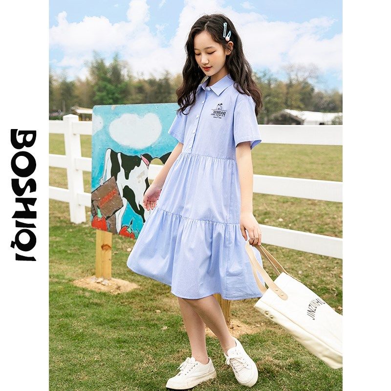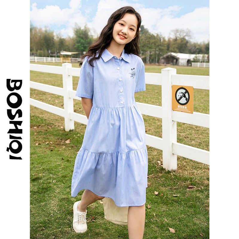 初中生连衣裙2024年新款少女高中学生夏季学院风时尚浅蓝A字裙子
