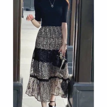 2025新款今年流行爆款半身裙垂坠感蕾丝拼接雪纺ins超火半身裙夏