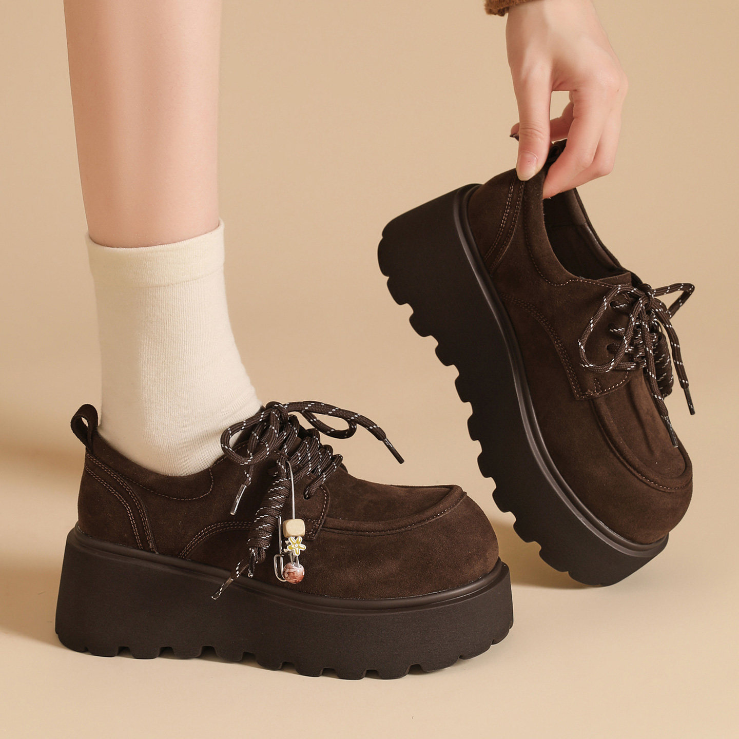 2025秋冬季新款坡跟松糕摇摇鞋少女纯色厚底单鞋保暖简约韩版鞋子