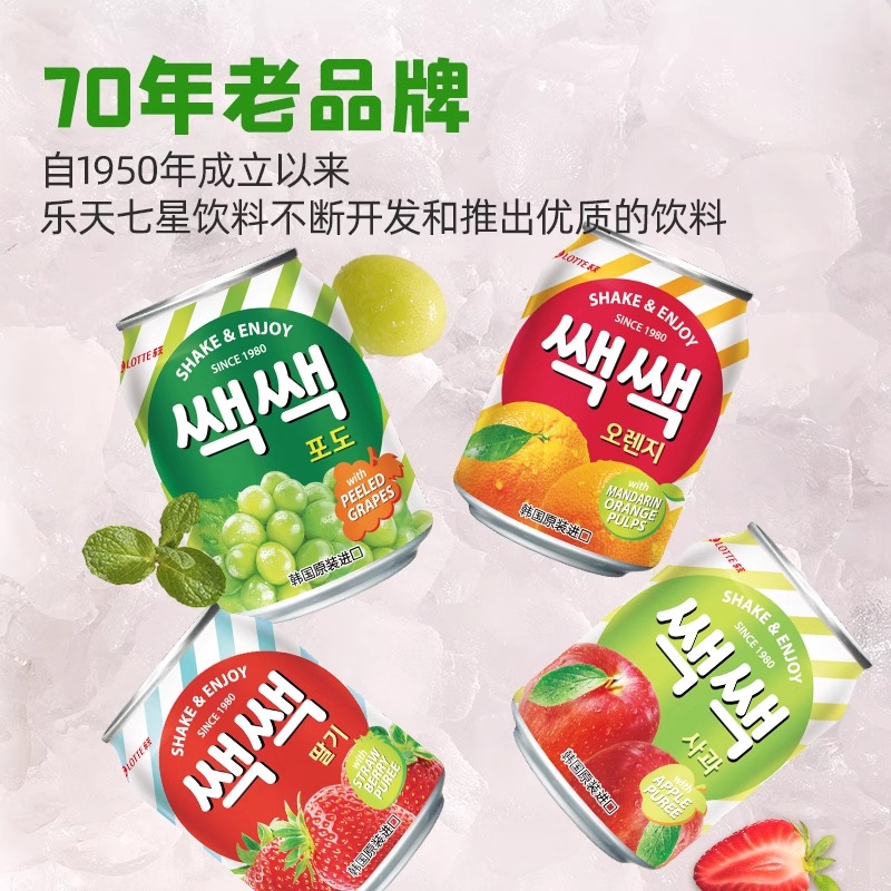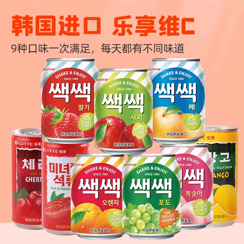 【自营】韩国乐天芒果汁葡萄桃橙汁碳酸饮料礼盒装整箱过年送礼