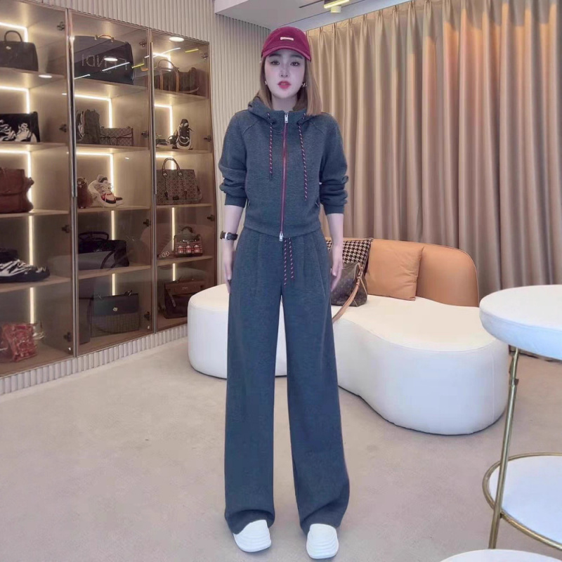 南油秋新款显高休闲运动套装女洋气减龄短款外套上衣阔腿裤两件套