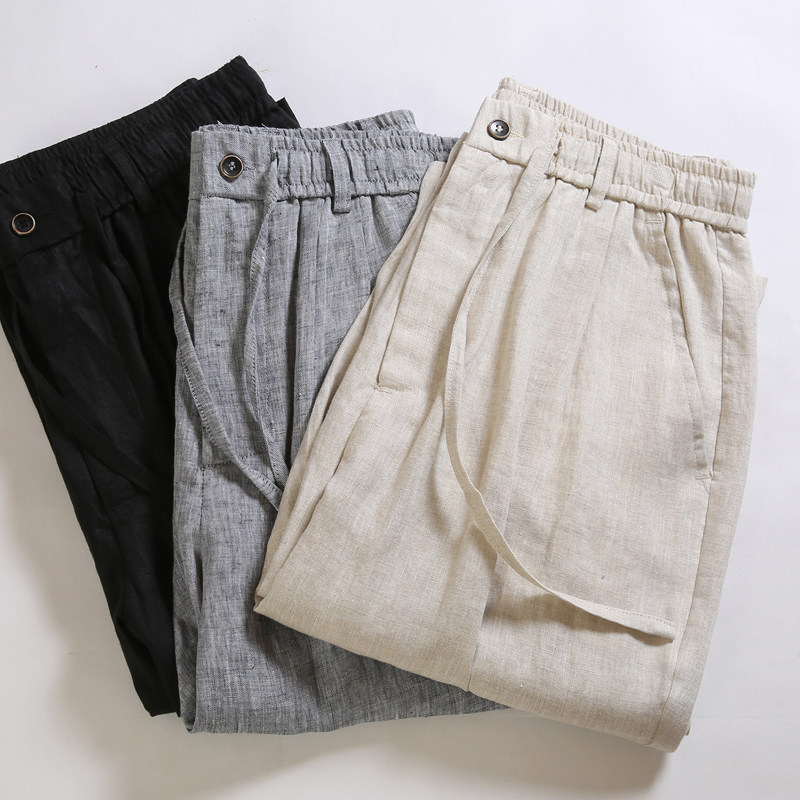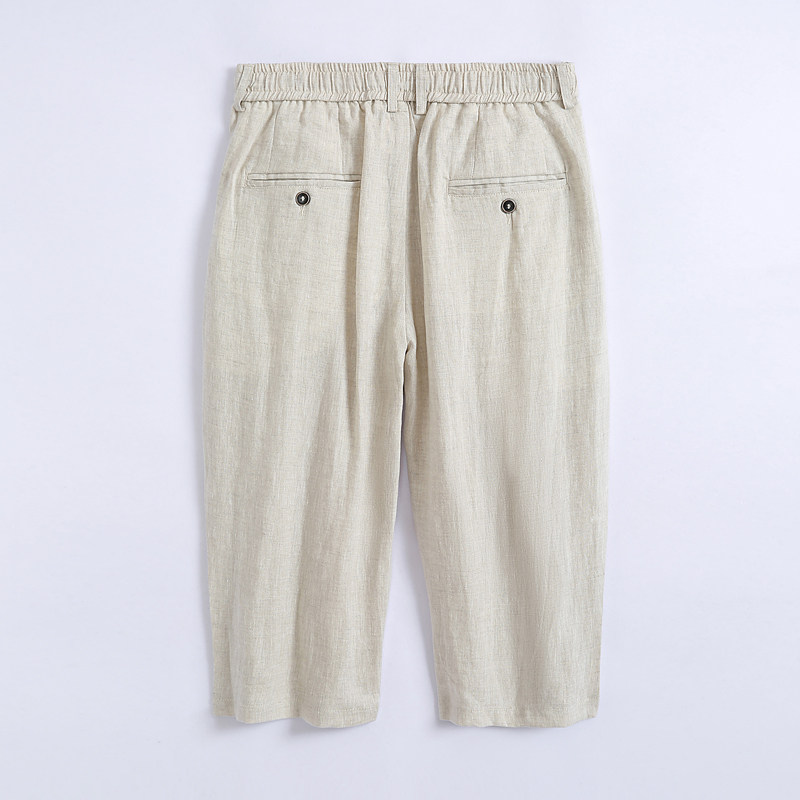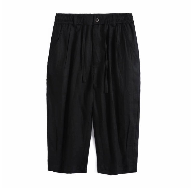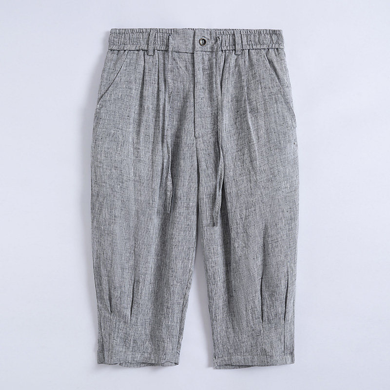 夏季亚麻休闲裤男夏季薄款透气七分裤宽松短裤阔腿裤男