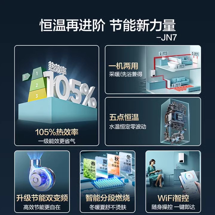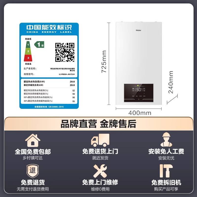 海尔燃气热水器采暖壁挂炉天然气家用超一级能效洗浴地暖锅炉JN7