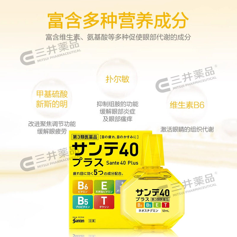 日本参天40抗疲劳眼药水缓解视疲劳滴眼液视线模糊红血丝结膜充血