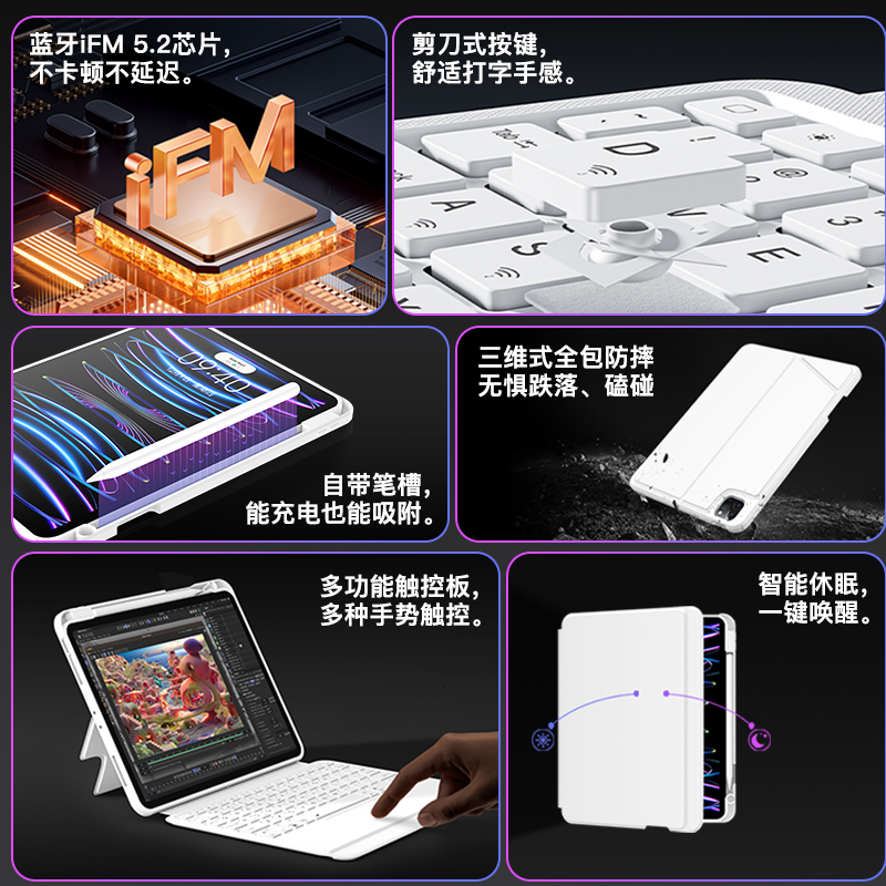 ifacemall适用苹果iPad妙控键盘Pro11寸mini6平板5电脑air6保护套4壳12.9无线8蓝牙3磁吸悬浮10代9秒触控2024