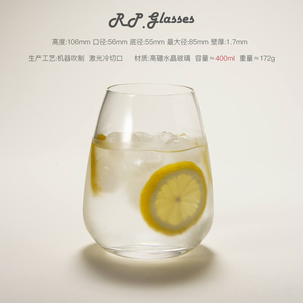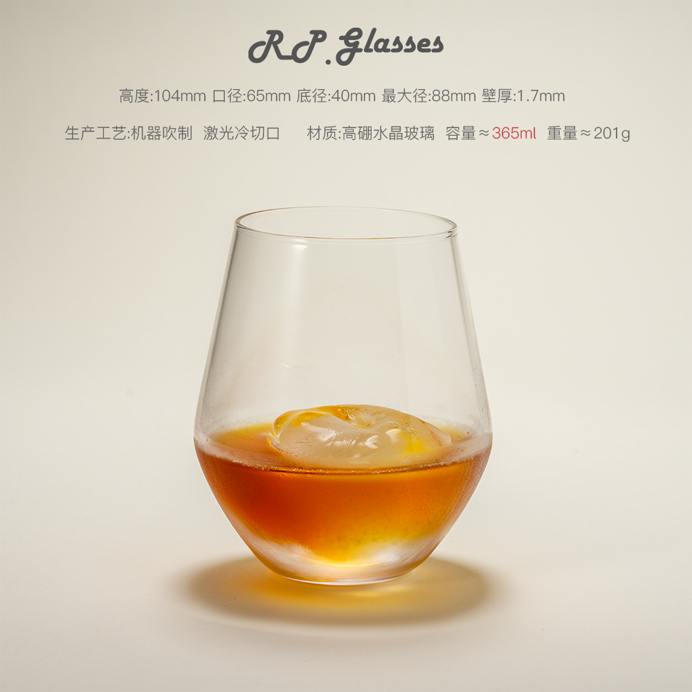 韧佩玻璃杯大肚收口杯古典威士忌杯无脚O型饮料果汁水杯可印LOGO
