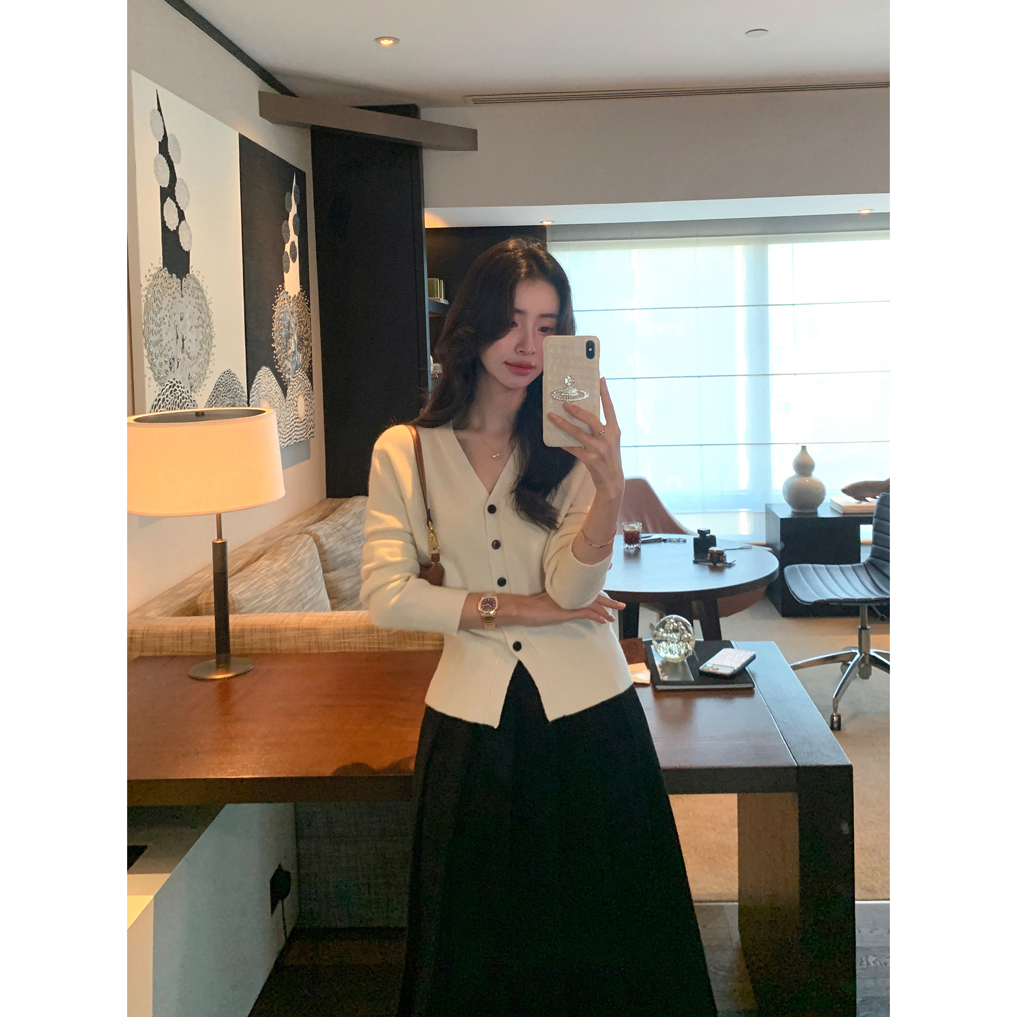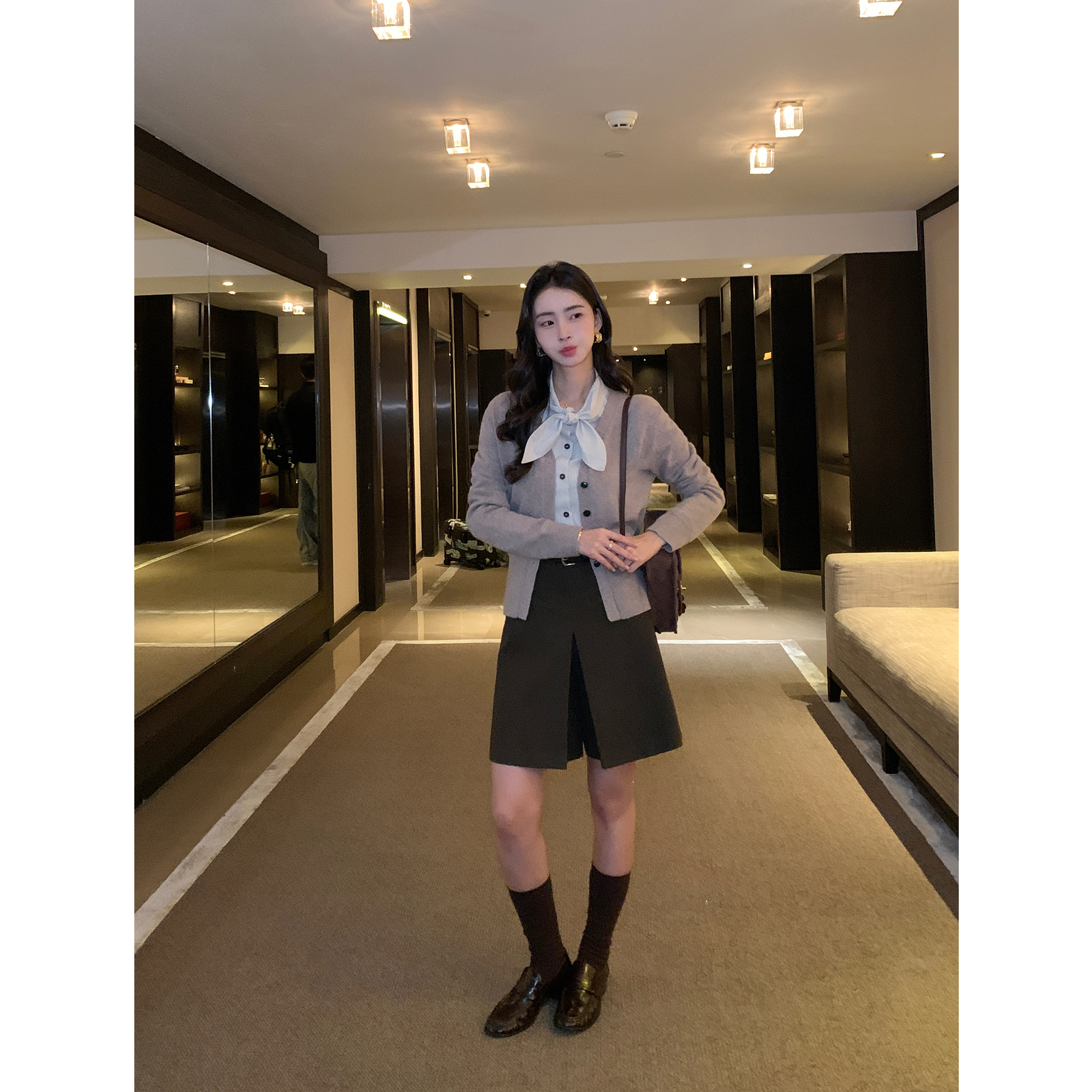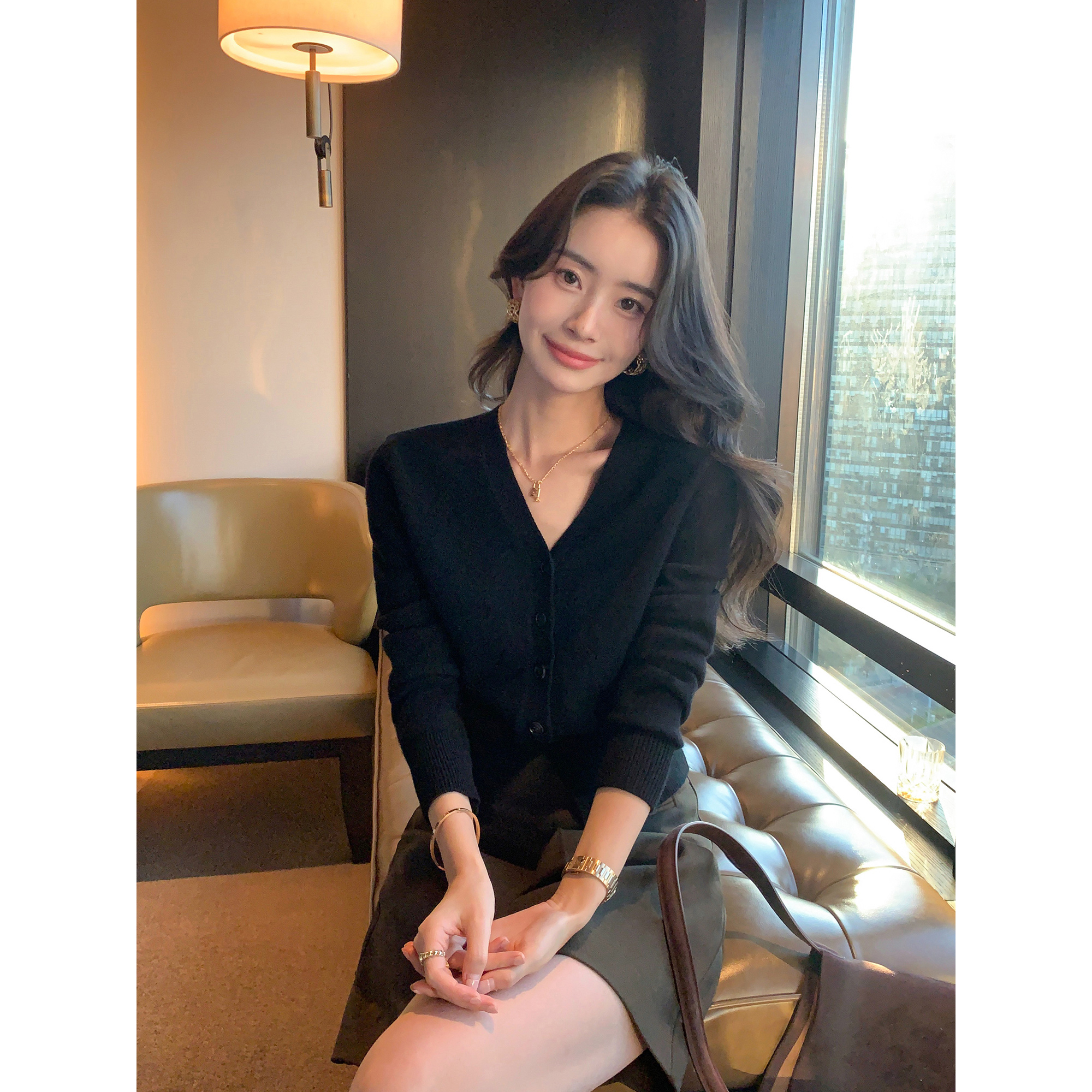 pusumede格织晚秋 100%羊毛V领开衫外套女气质宽松短款针织衫上衣