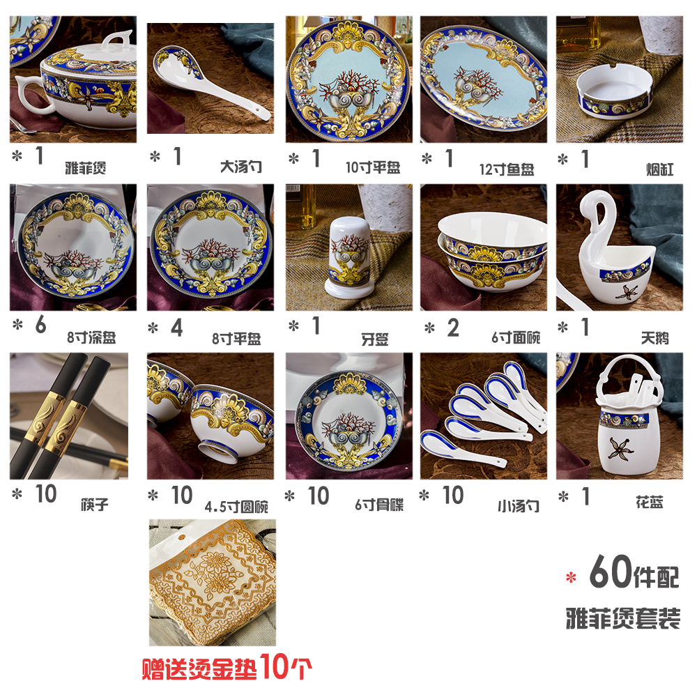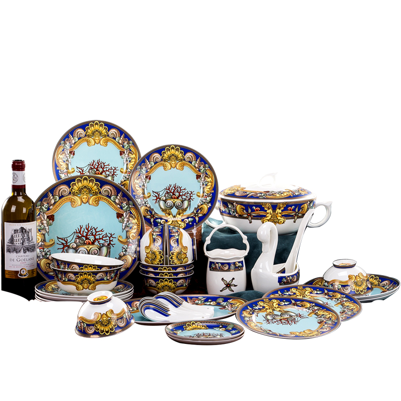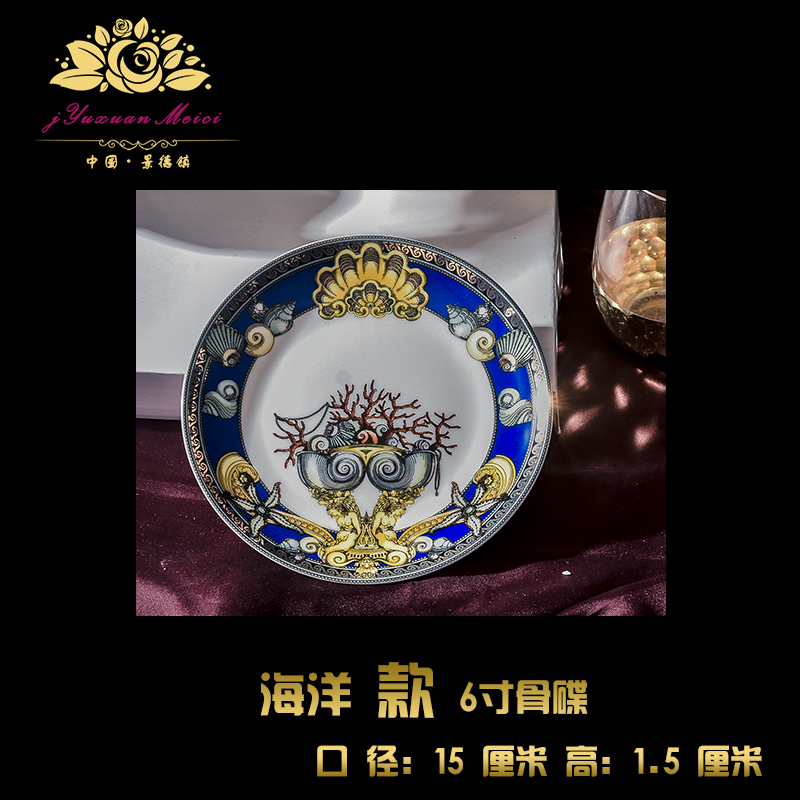 景德镇高档餐具碗盘欧式碗碟套装家用简约骨瓷创意范思海洋风送礼