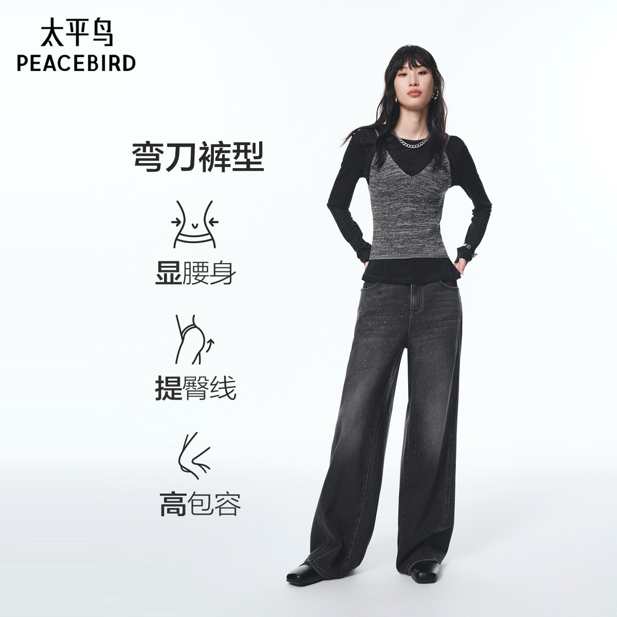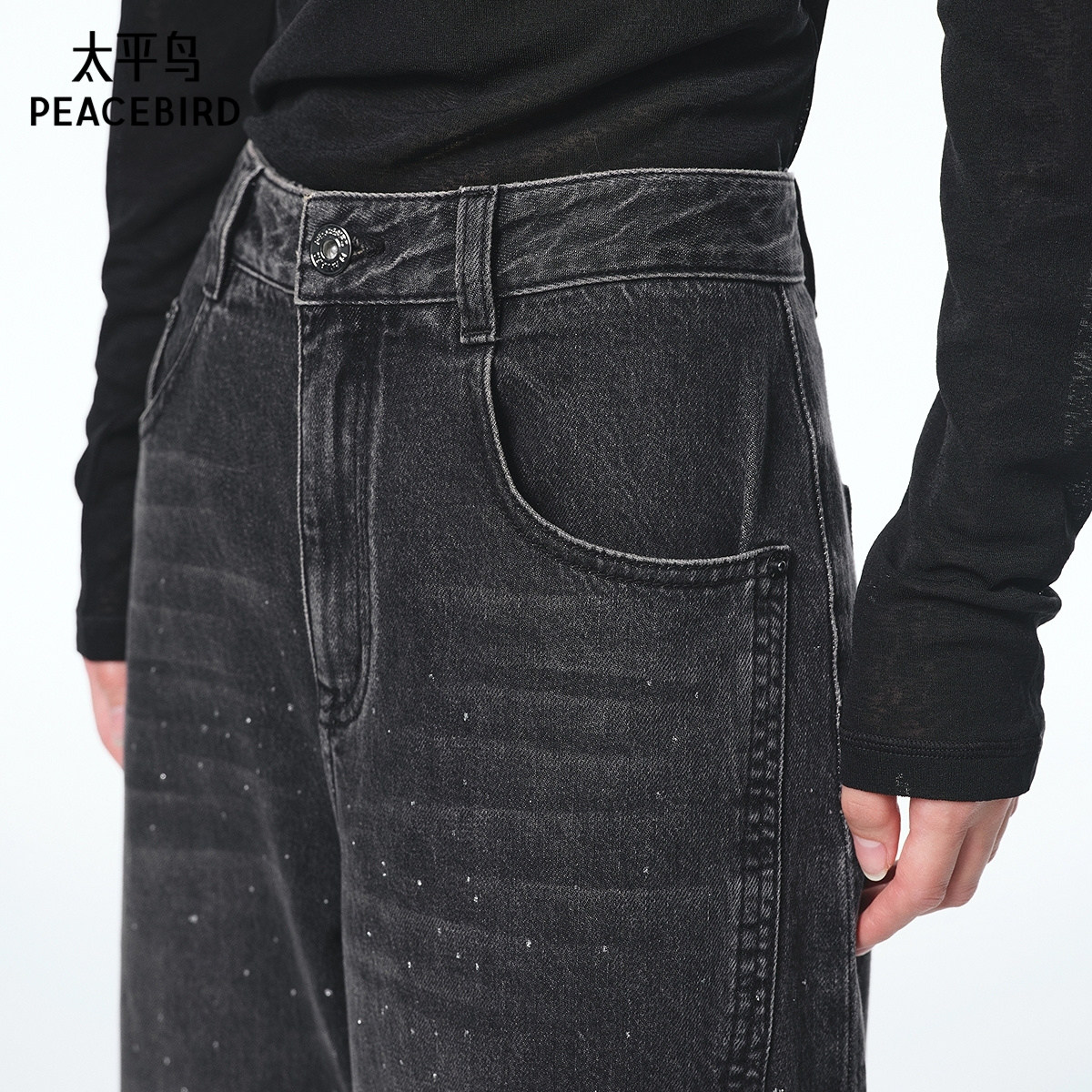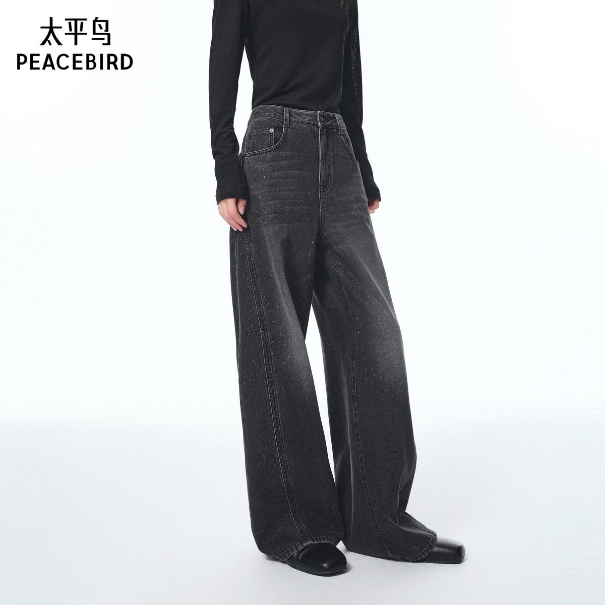 【商场同款】太平鸟2025年秋季新款闪粉宽松弯刀牛仔裤A1HAF3539