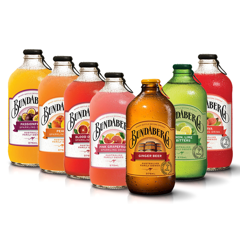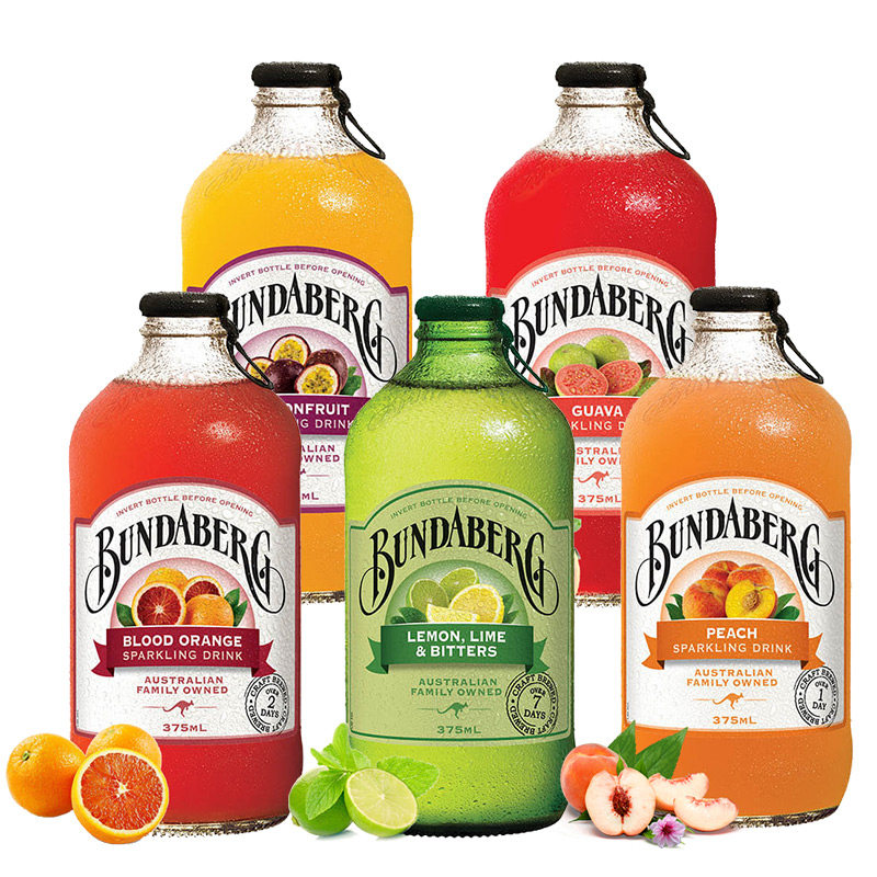 澳洲宾得宝Bundaberg姜汁百香果果汁味汽水网红饮料进口气泡水5瓶