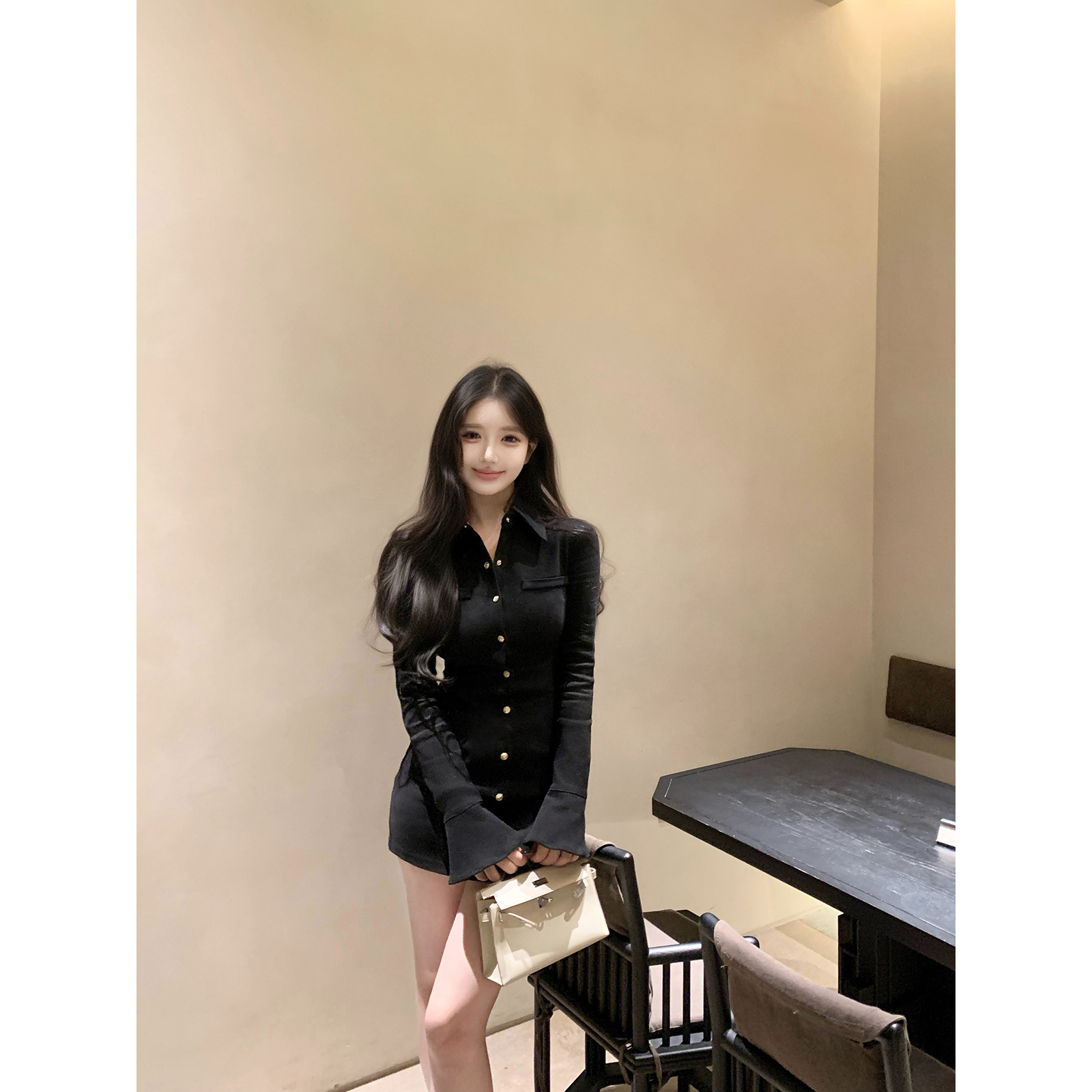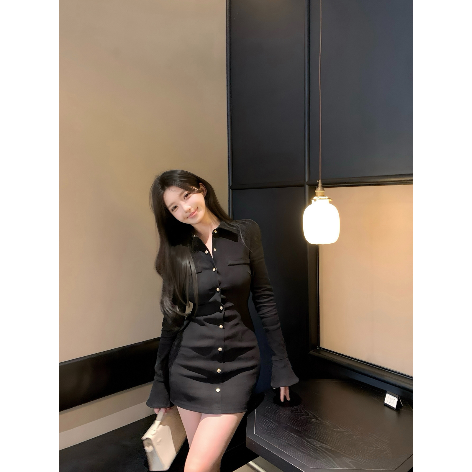Hotdog 热狗很辣【漫步深秋】修身显瘦气质单排扣长袖包臀连衣裙