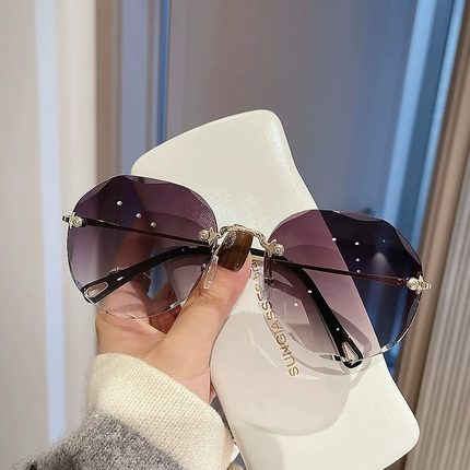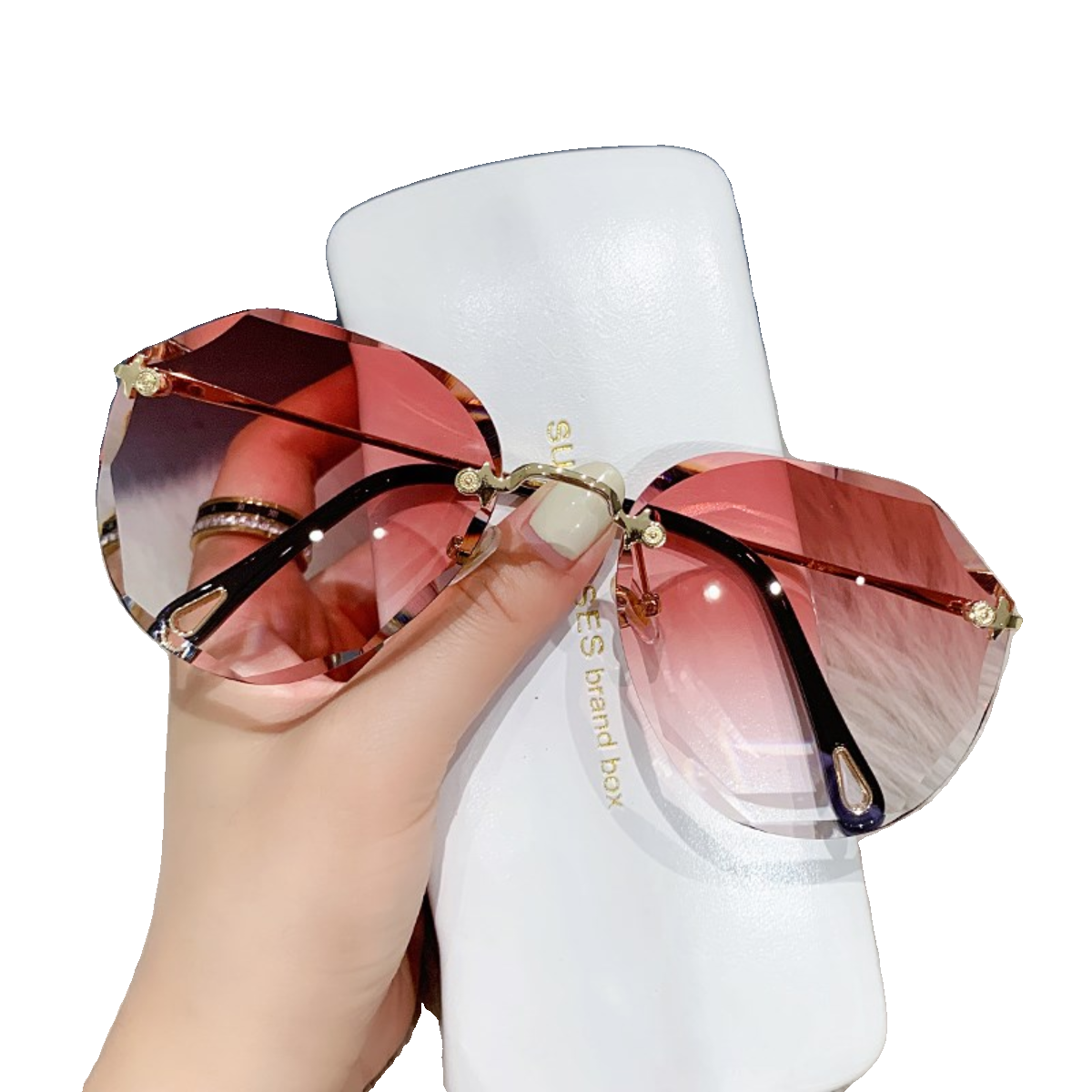 新款无框太阳镜女街拍ins切边大框个性网红时尚蛤蟆镜墨镜女眼镜