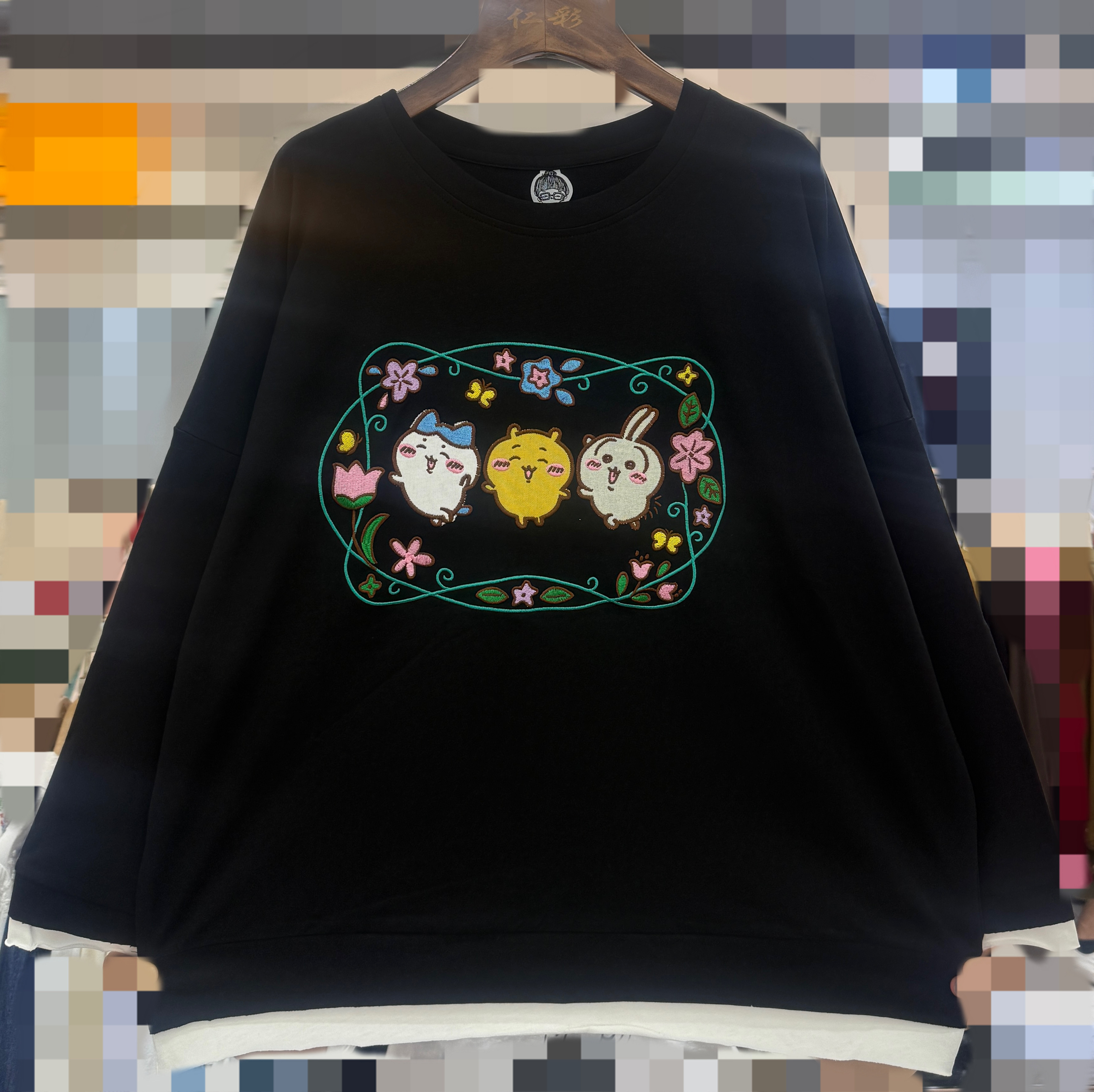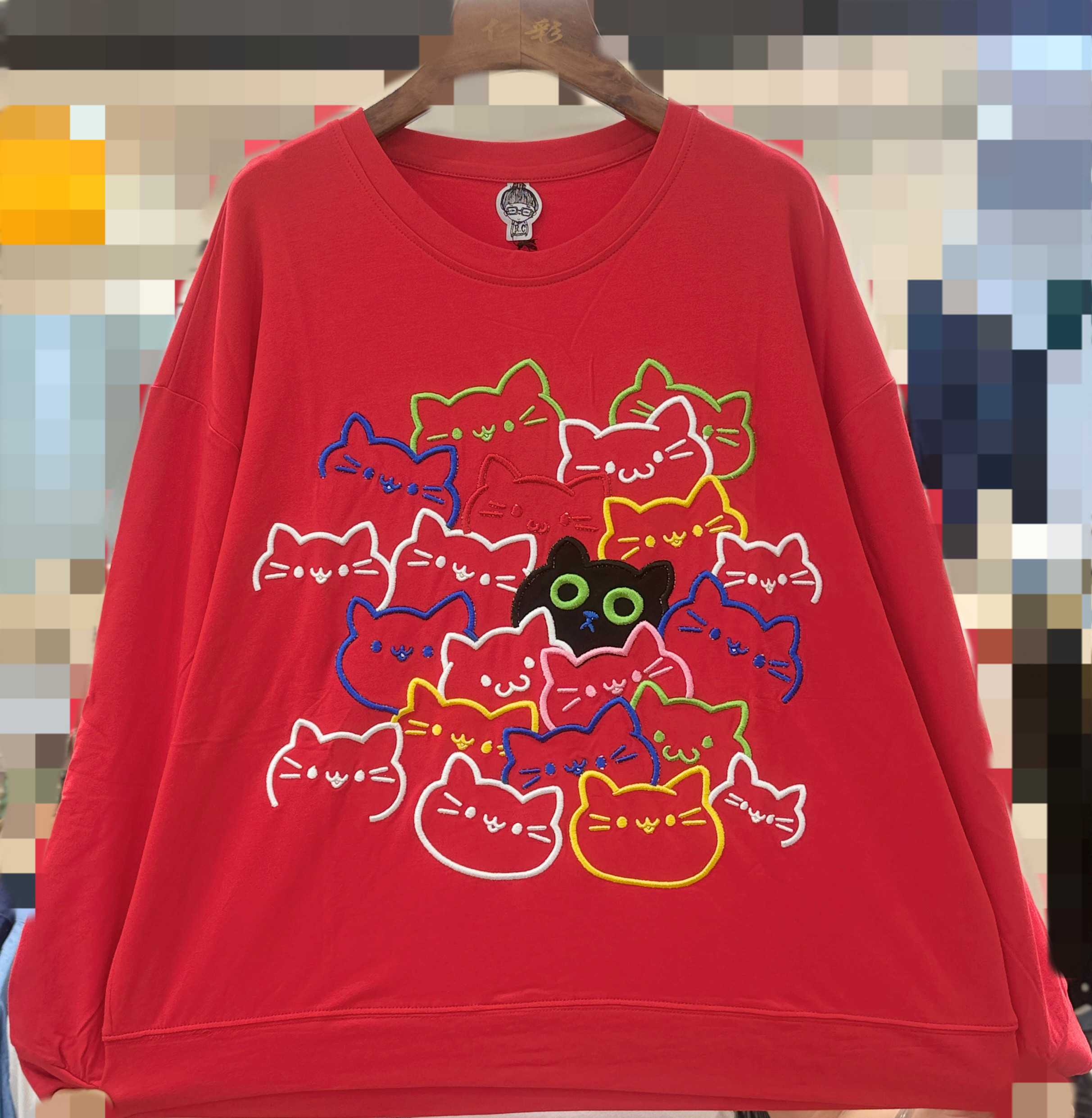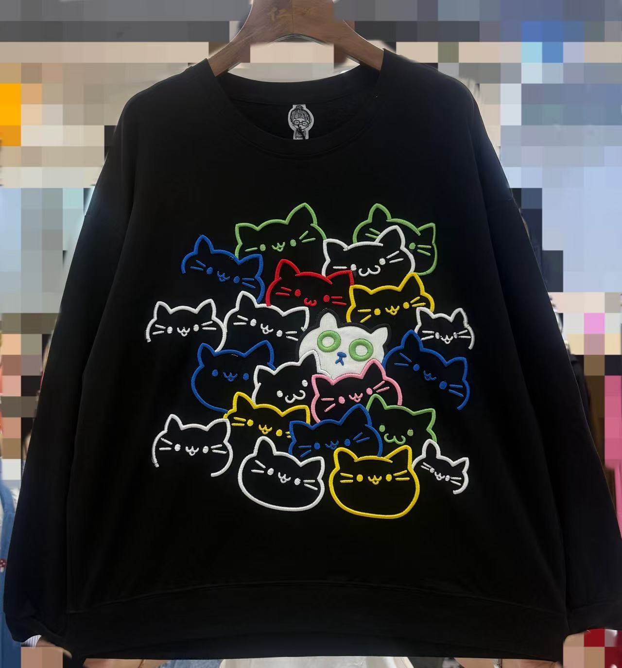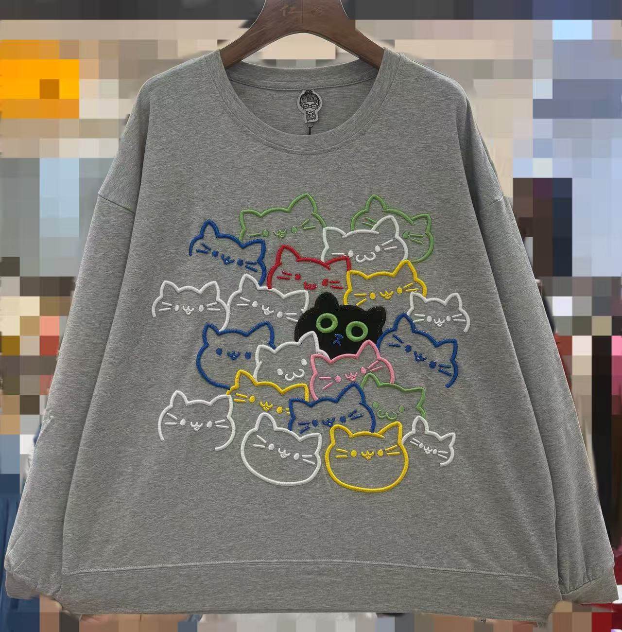 韩版小猫刺绣秋新款宽松大码圆领长袖纯棉个性百搭时上卫衣女潮
