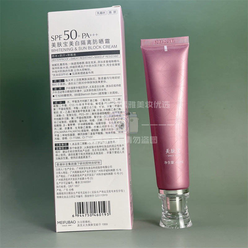 美肤宝美白隔离防晒霜50倍面部户外旅行高倍防水汗紫外女学生临期