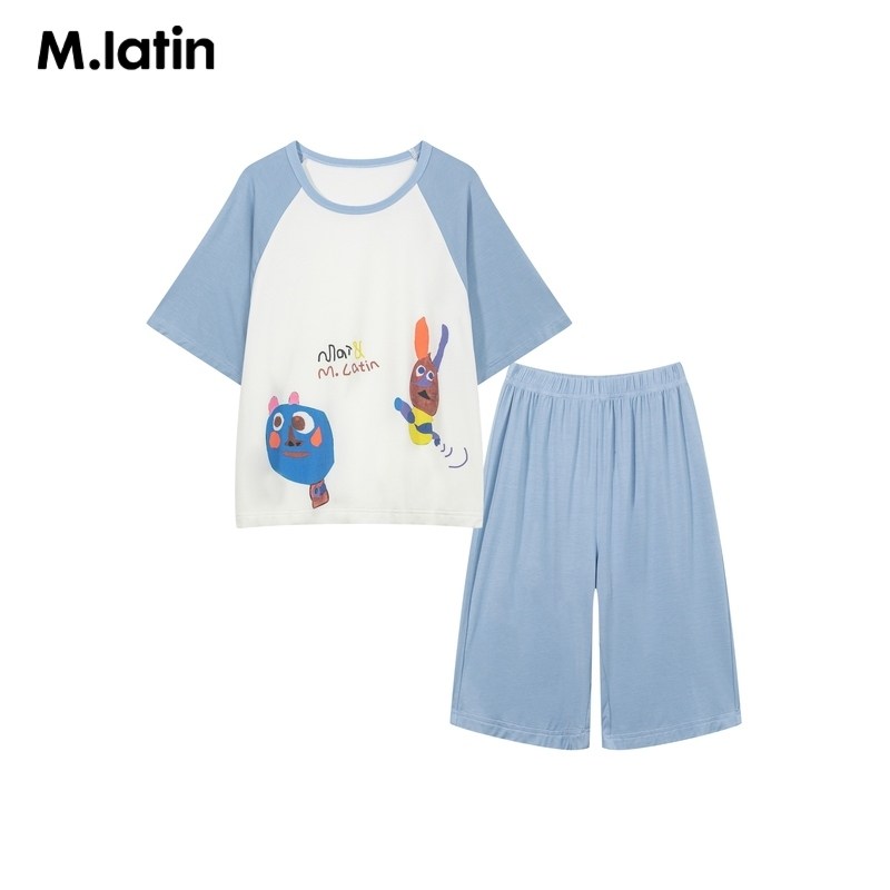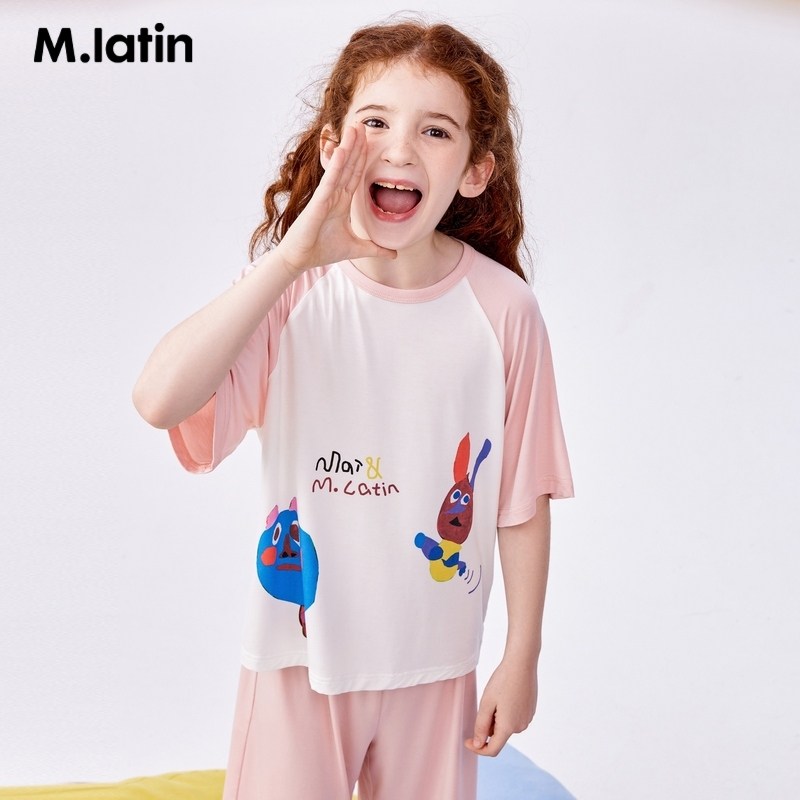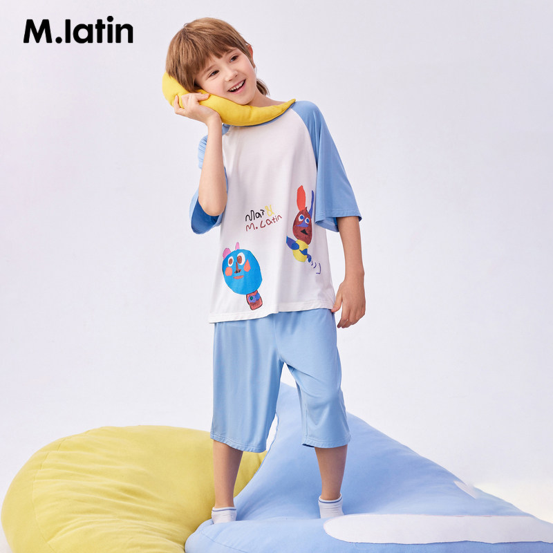 马拉丁童装儿童家居服夏新款男童女童大童趣味印花短袖T恤套装