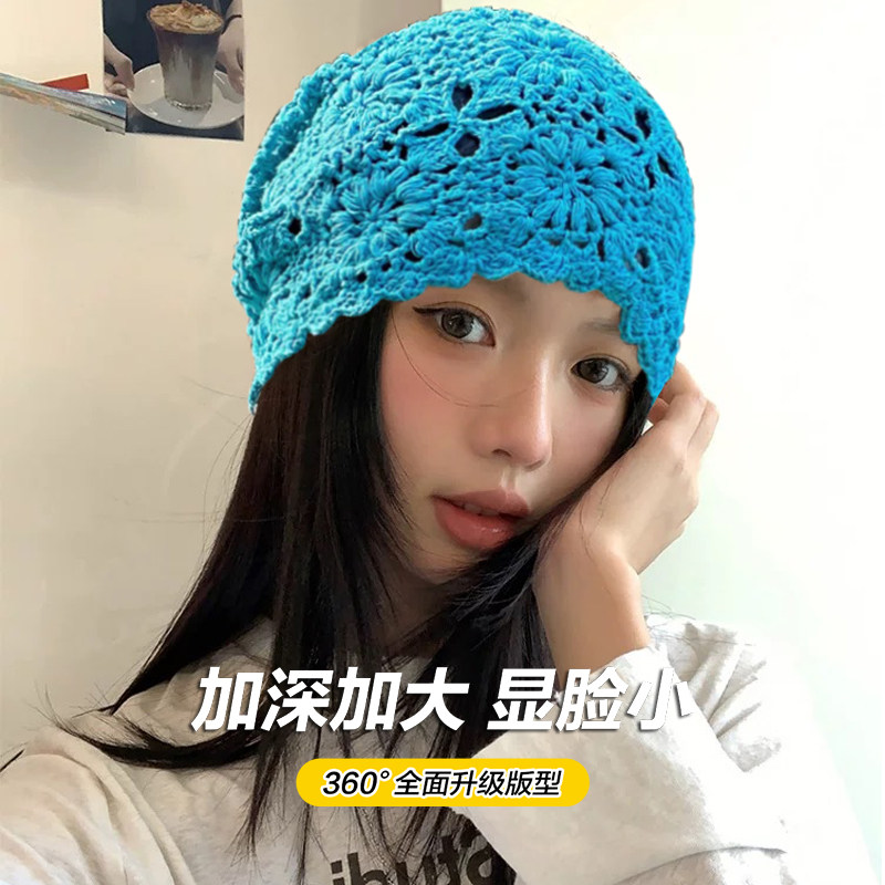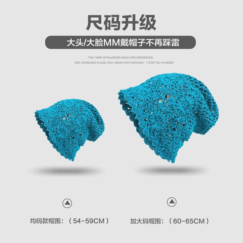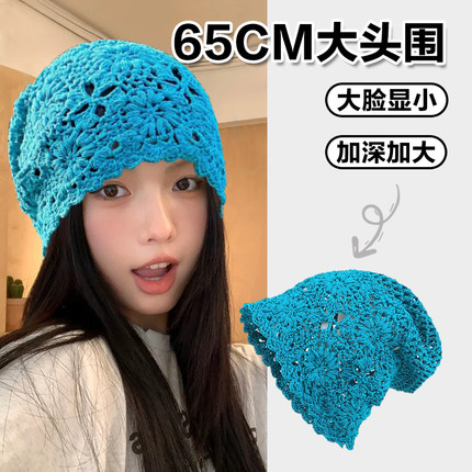 大头围帽子手工钩花编织镂空针织包头帽大号大码海边蕾丝堆堆帽