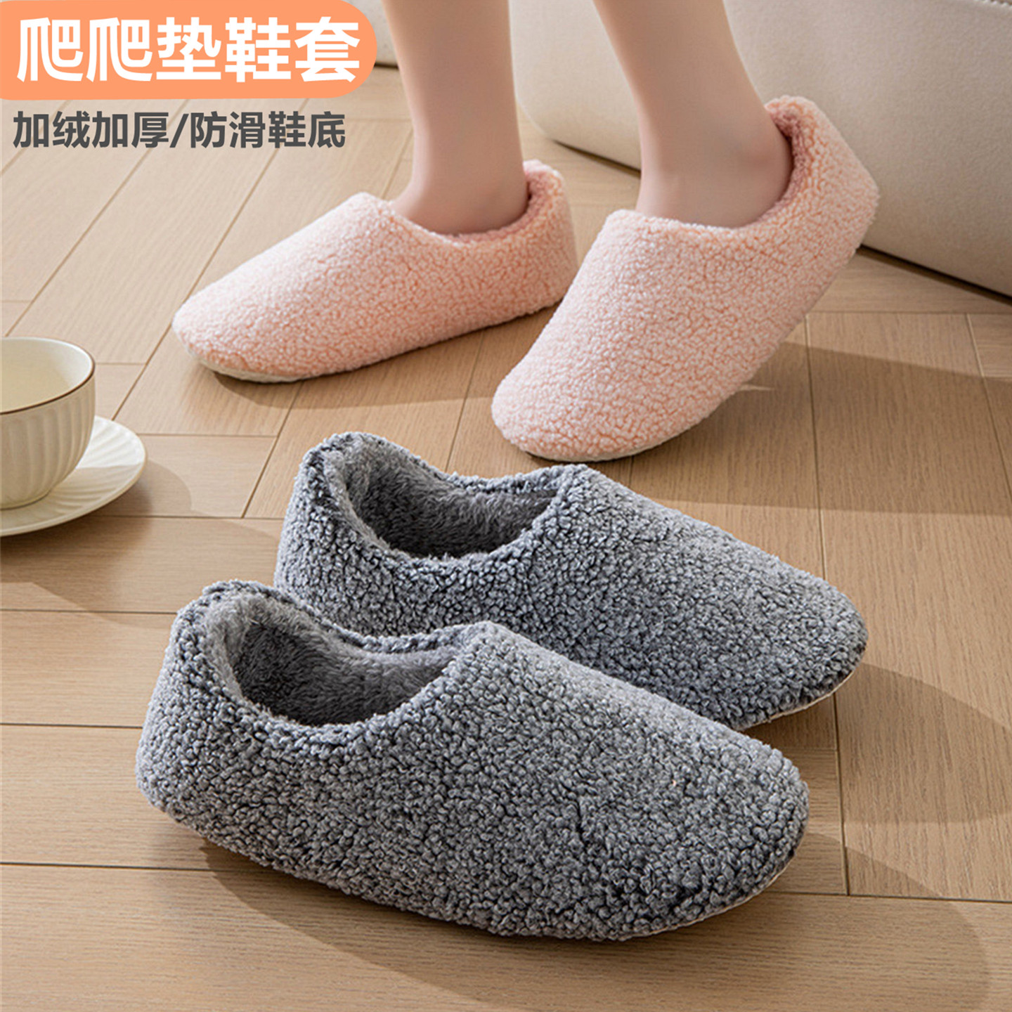 爬爬垫专用鞋大人秋冬加绒加厚防滑脚套软底居家成人全包拖鞋包跟