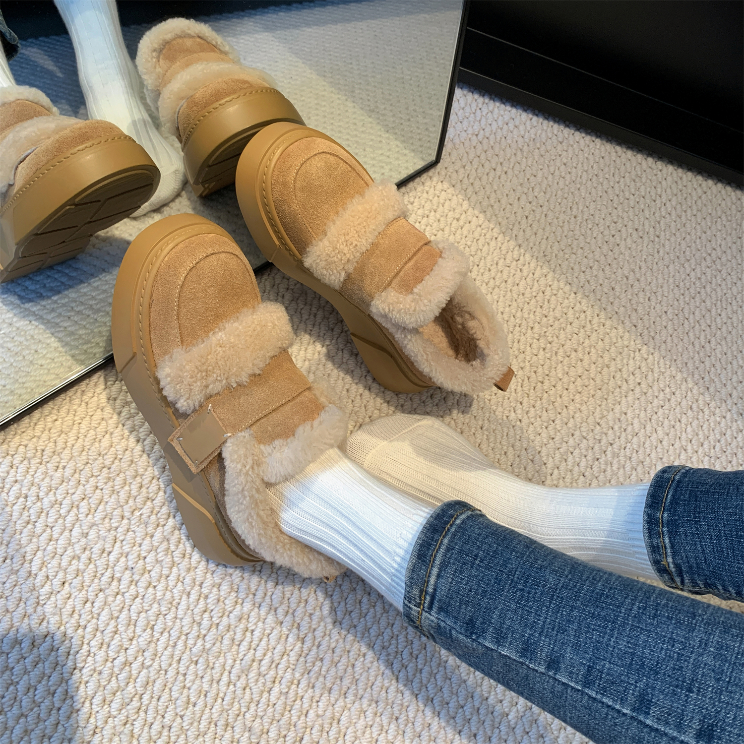 牛反圆头厚底增高羊毛懒人毛毛鞋