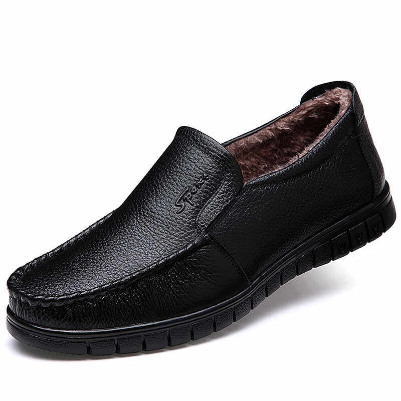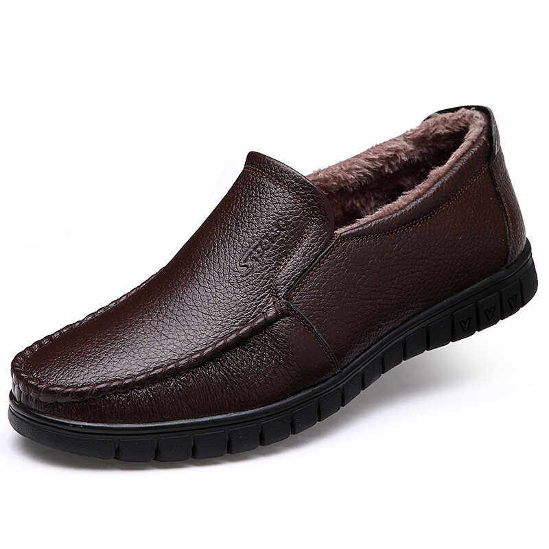 意尔康男鞋真皮冬季软底休闲皮鞋男士棉鞋加绒保暖父亲中年爸爸鞋