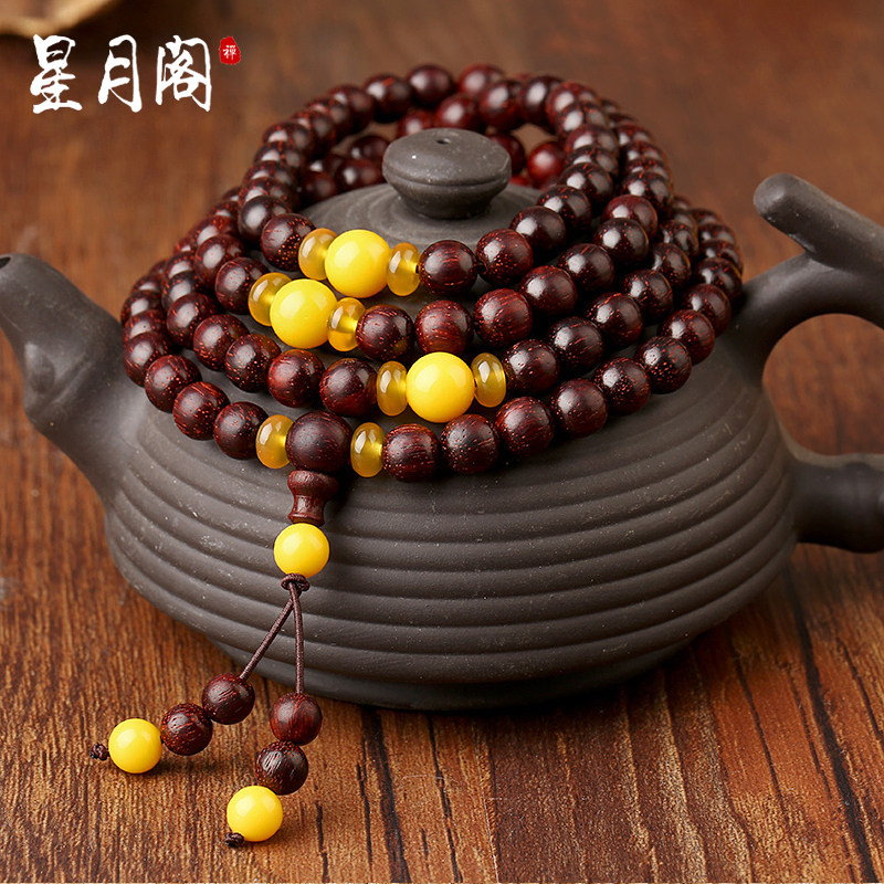 包邮小叶紫檀高密印度老料108颗情侣手链手串男女款佛珠天然保真