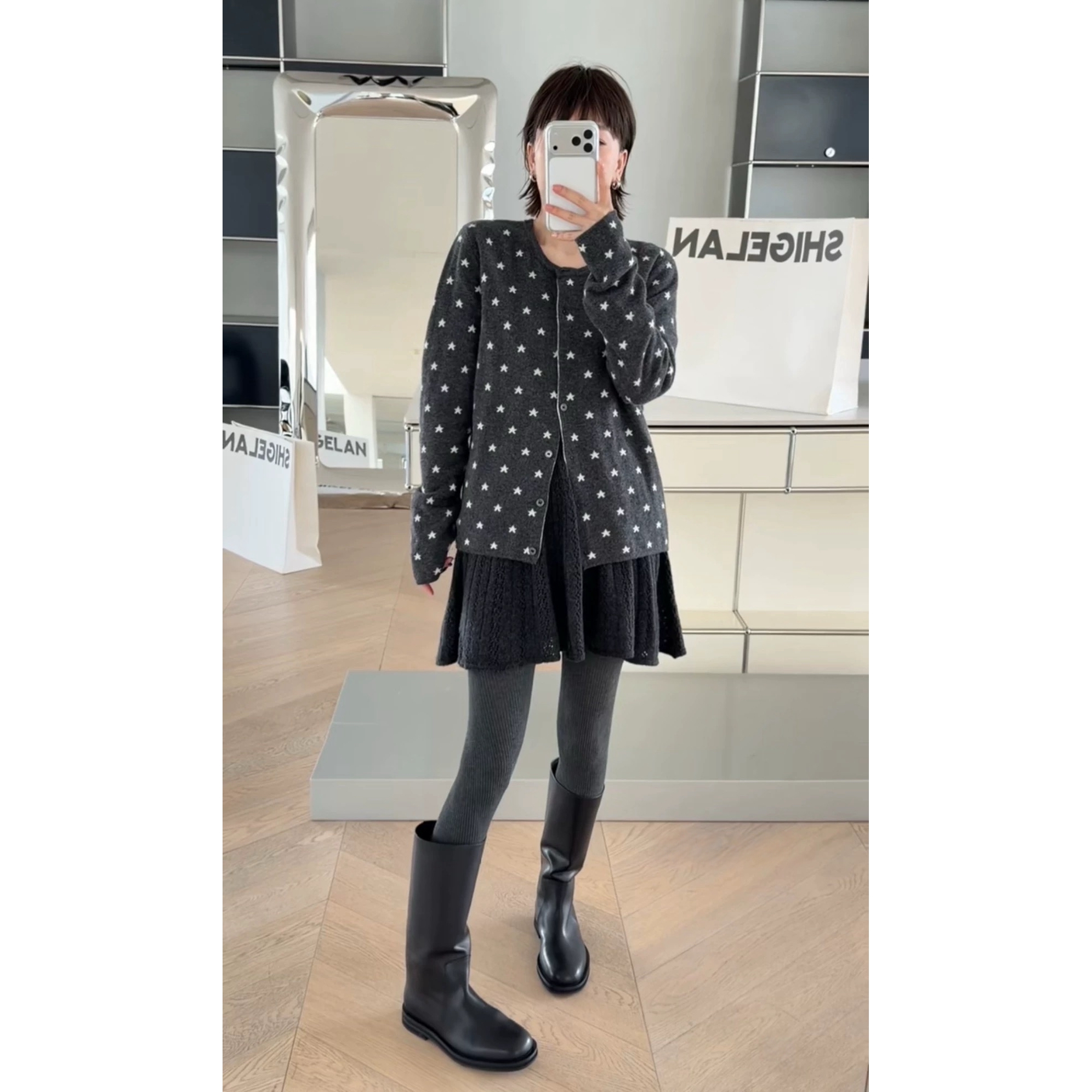 现货诗歌兰15146法式学院风简约松紧腰百褶裙针织半裙女2025秋冬
