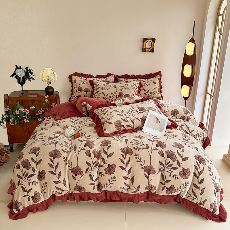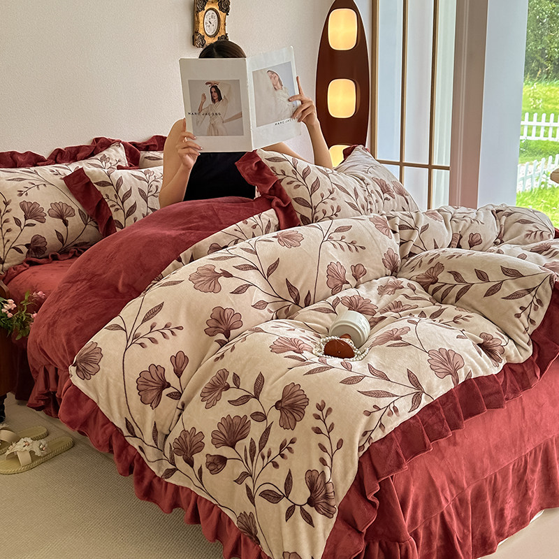 加厚牛奶绒四件套床裙款珊瑚绒加绒被套床单保暖套件双面绒秋冬季