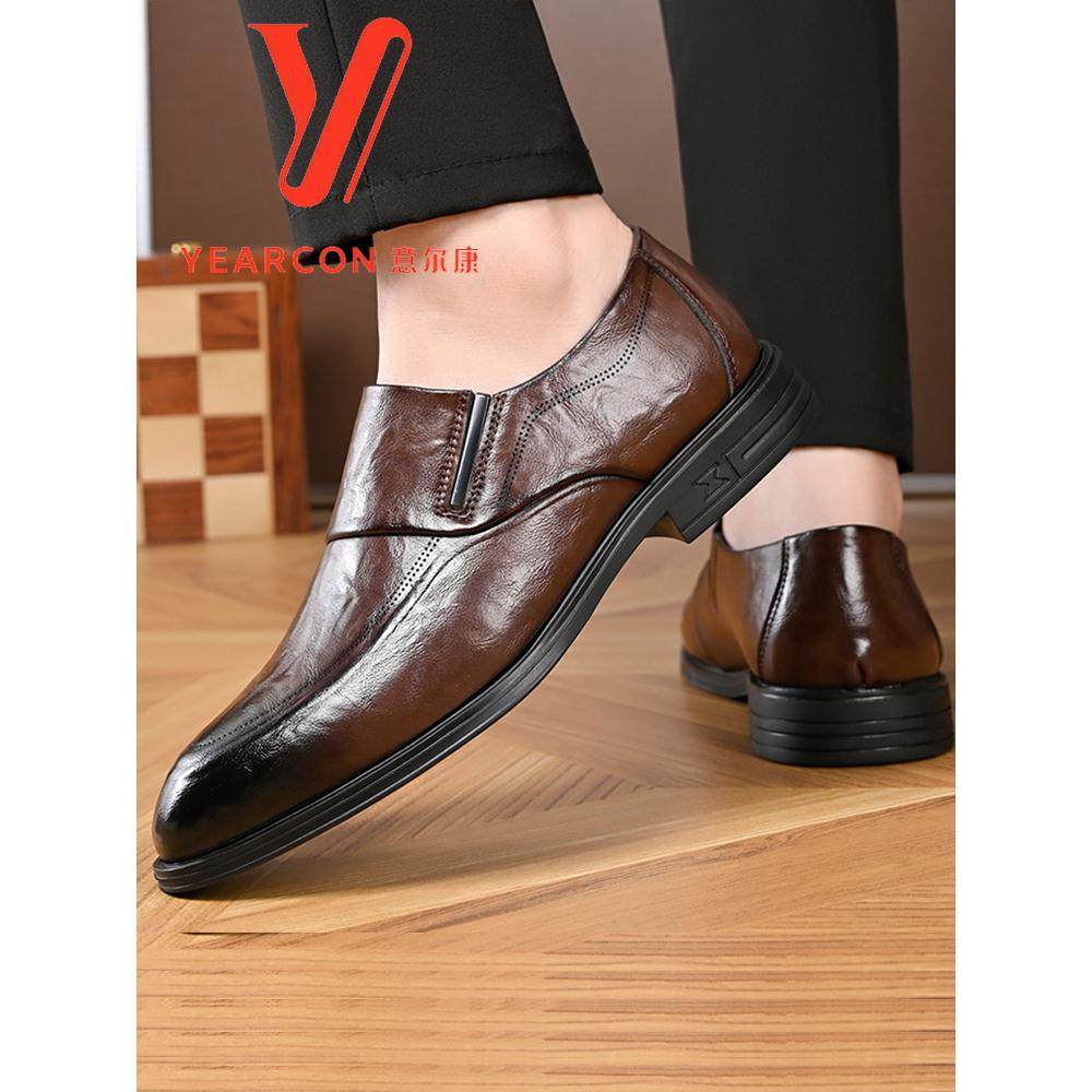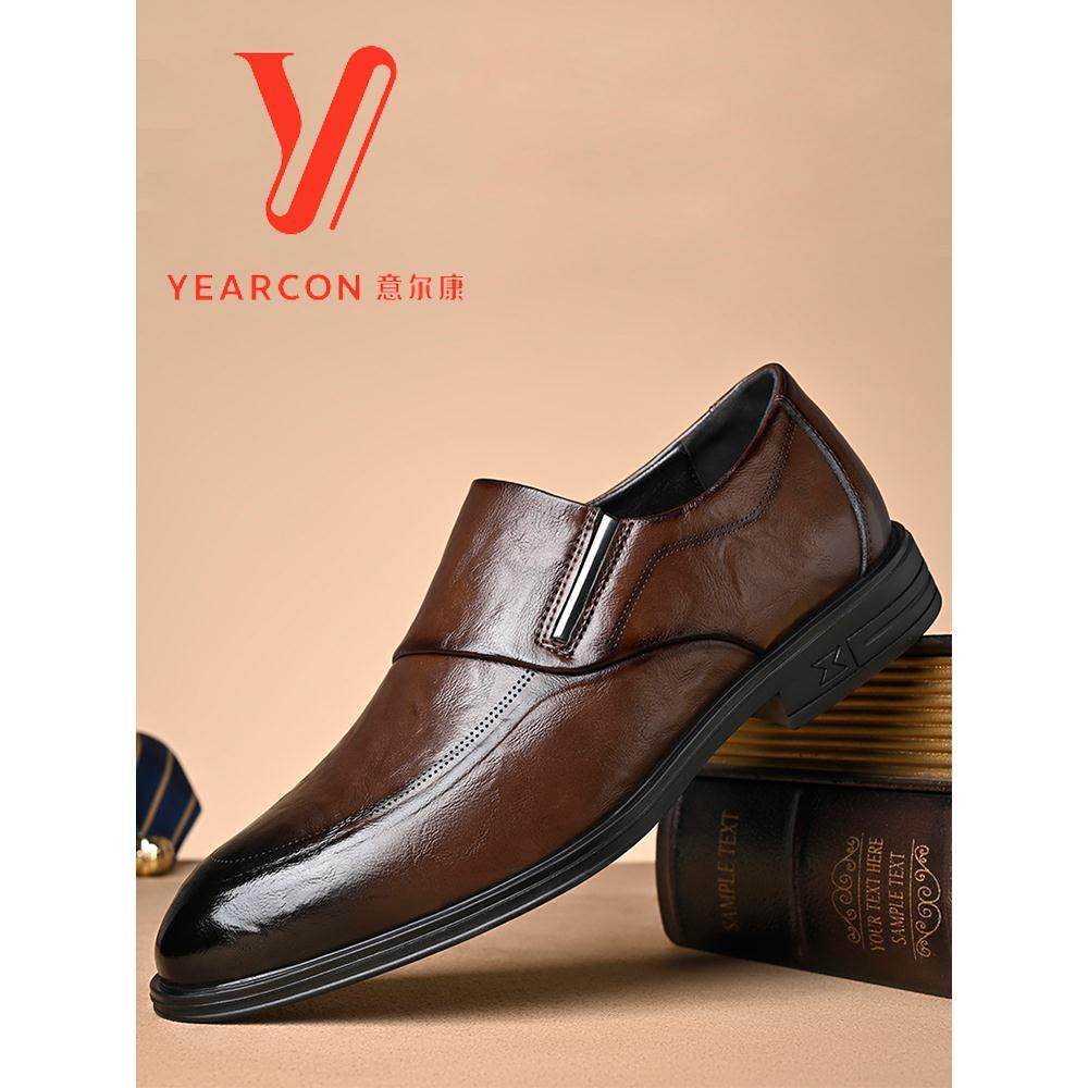 意尔康秋季新款男士商务正装皮鞋男真皮头层牛皮棕色休闲男鞋